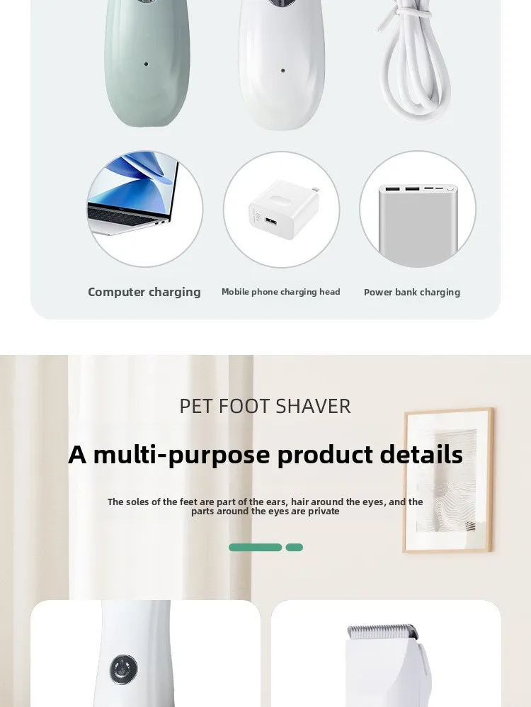 Afeitadora para perros, tijeras eléctricas de empuje para mascotas, gato, perro de peluche, pelo especial para pies, recorte de suela, herramienta de belleza eléctrica Fader