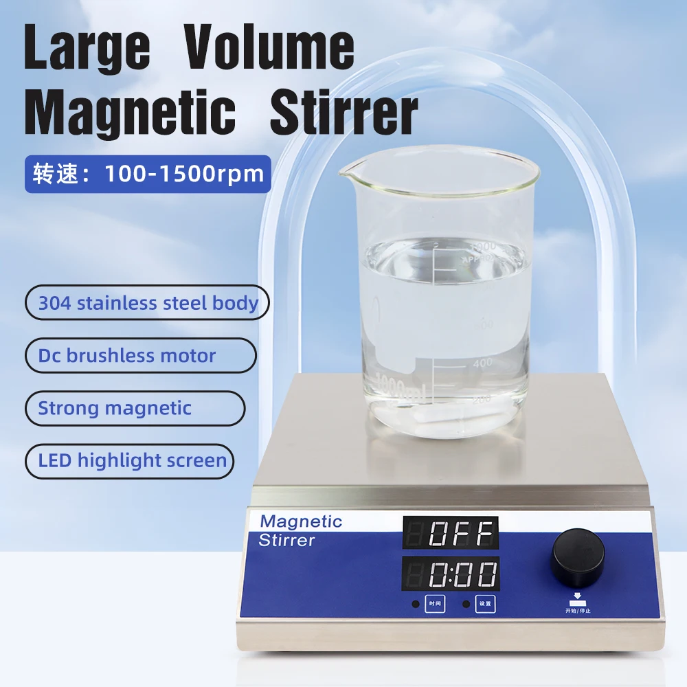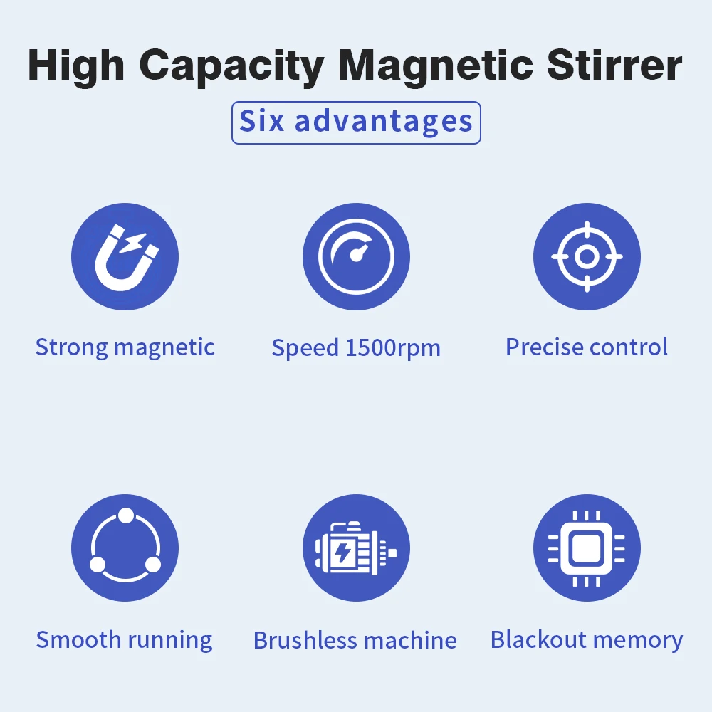 Agitador magnético de alto volumen de 10L, mezclador magnético de velocidad ajustable de 100-1500 RPM, dispositivo de mezcla de laboratorio con barras agitadoras MS10