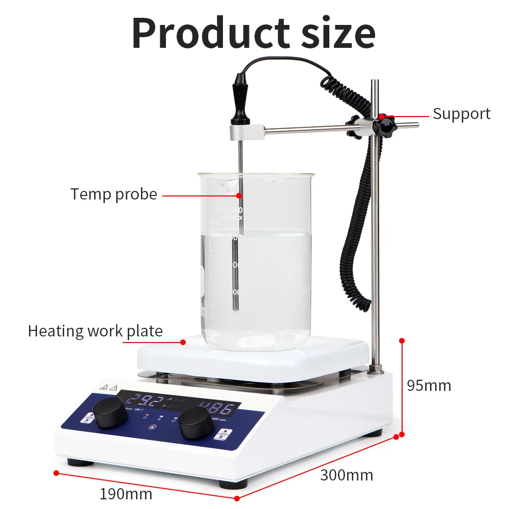 Agitador magnético de calefacción de 10L MS800Pro Mezclador de laboratorio Agitador con pantalla LED 100-2000RPM Agitador magnético de velocidad ajustable Enchufe del Reino Unido UE EE. UU.