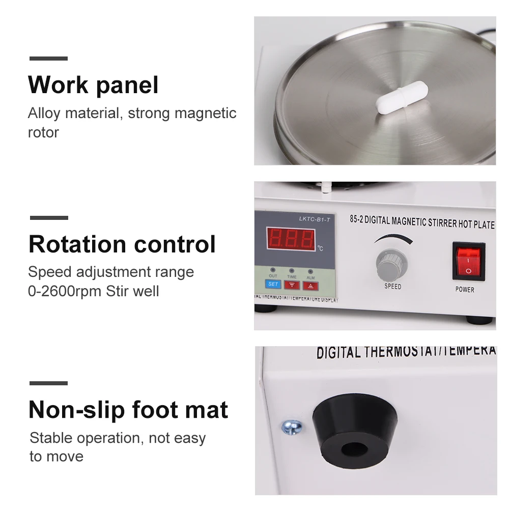 Agitador magnético de calefacción de 1L 85-2 Mezclador magnético de placa calefactora 2600RPM Máquina mezcladora de laboratorio con barra agitadora para investigación científica