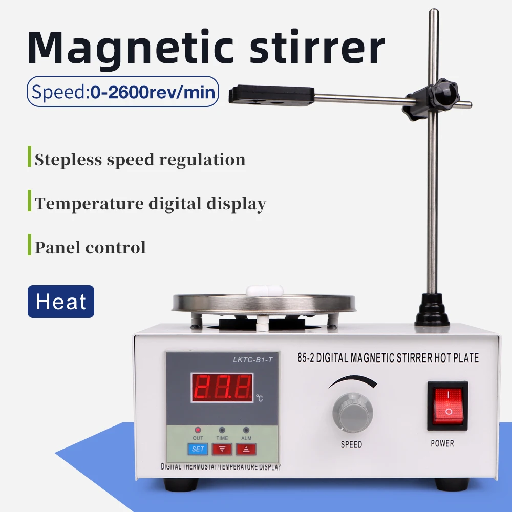 Agitador magnético de calefacción de 1L 85-2 Mezclador magnético de placa calefactora 2600RPM Máquina mezcladora de laboratorio con barra agitadora para investigación científica