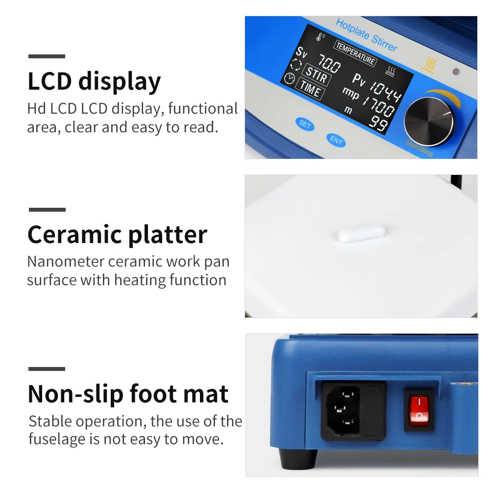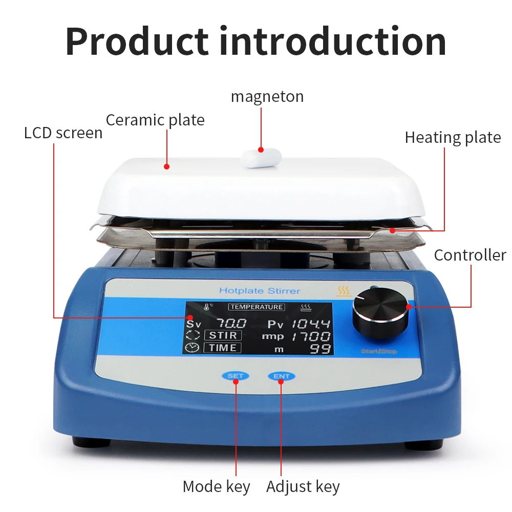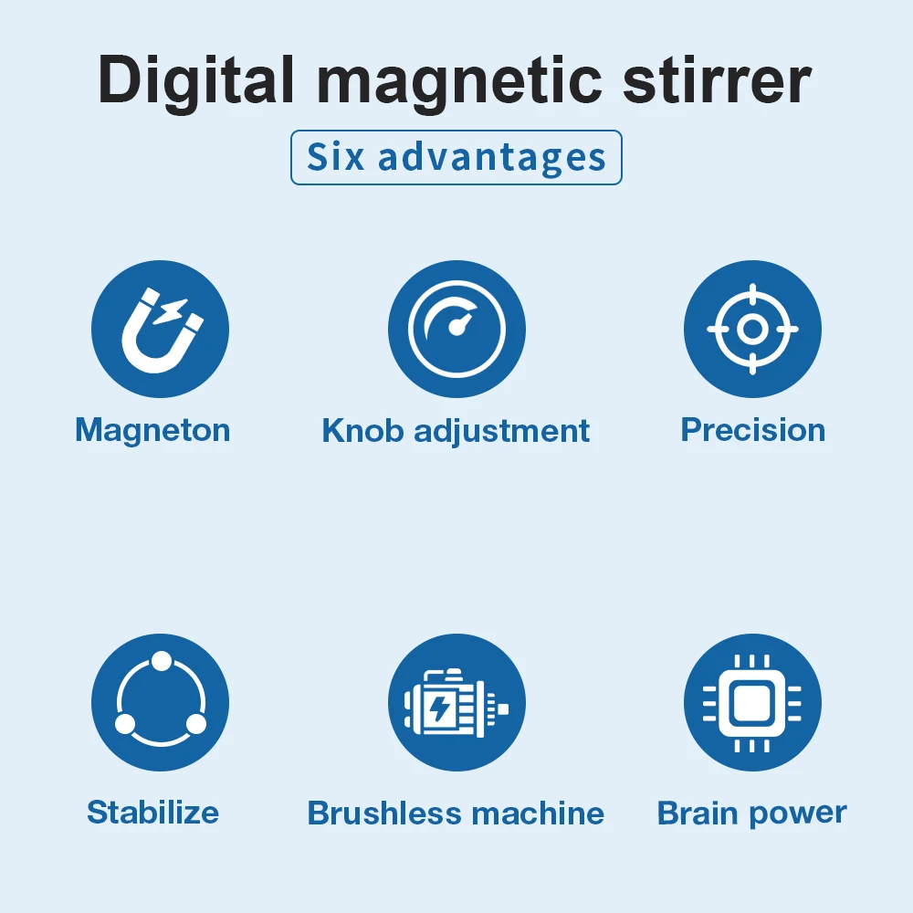 -El agitador magnético es principalmente adecuado para mezclar líquidos, así como para mezclar y calentar líquidos de baja viscosidad o mezclas sólidas-líquidas en laboratorios.