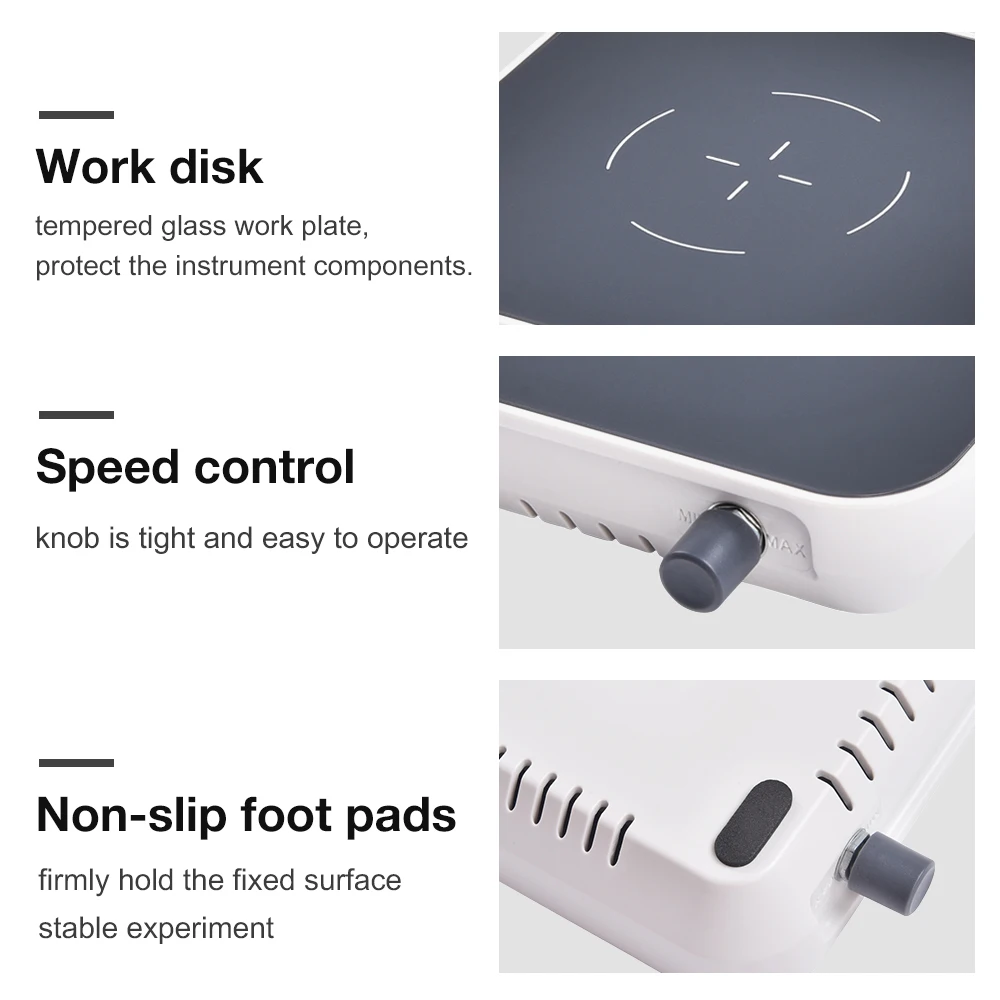 O una mezcla sólida-líquida.Mini agitador magnético, de apariencia simple y elegante, fácil de transportar, apto para operaciones móviles y capacidad máxima de mezcla de 2L.Regulación de velocidad infinita, amplio rango de velocidad, control preciso, imán magnético fuerte, no es fácil de saltar.