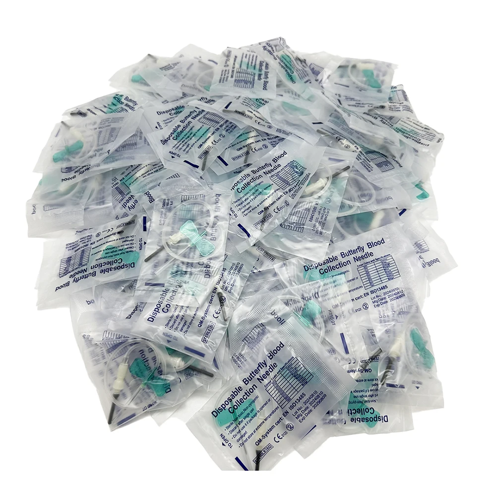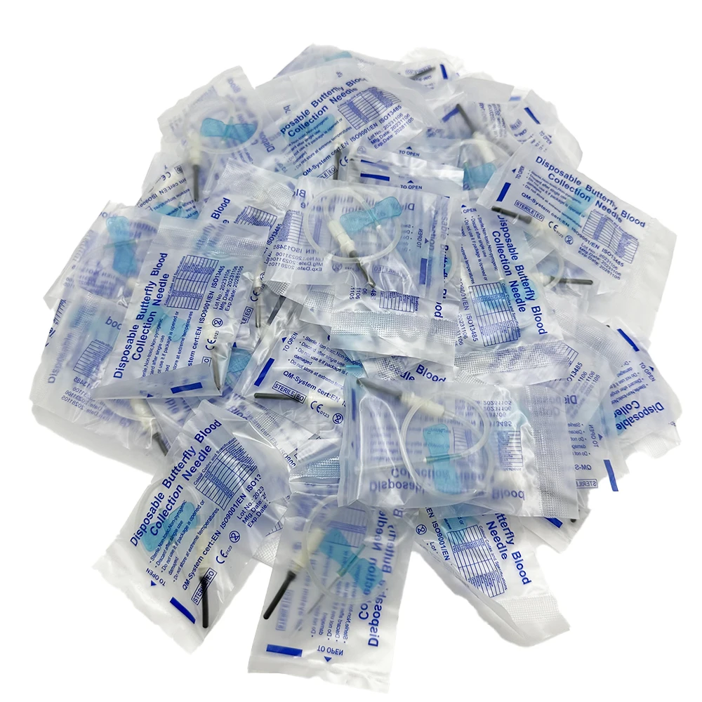 Aguja de colección de sangre de mariposa desechable, tipo de doble ala, para el cuidado de mascotas, gatos y perros, lote de 100 unidades