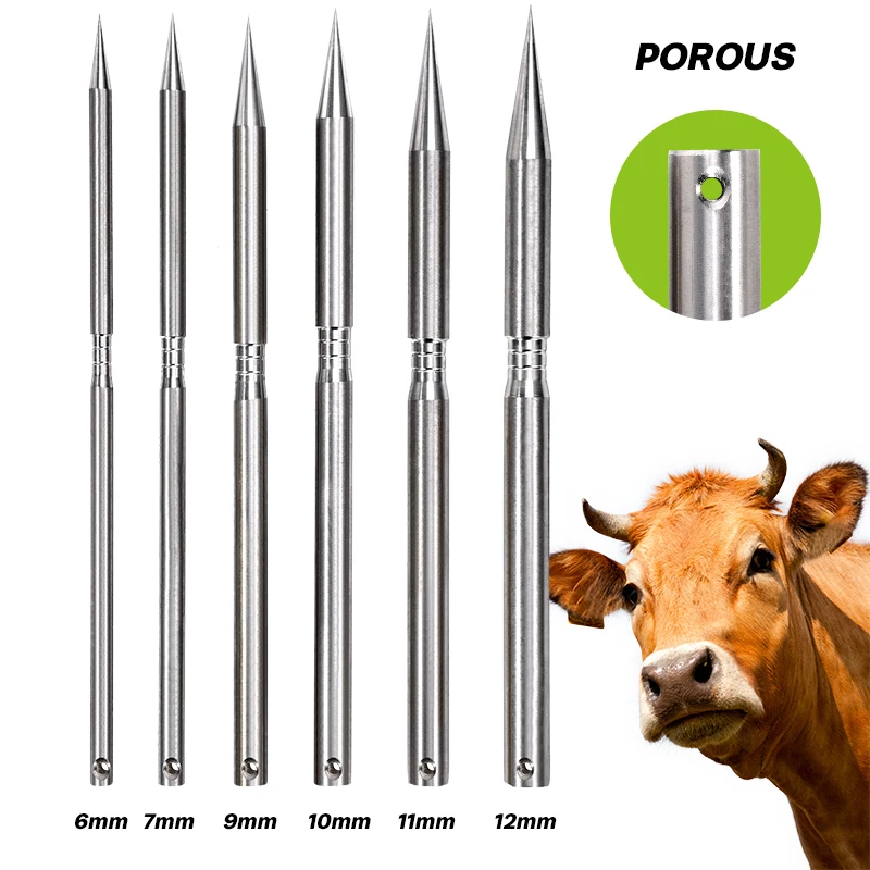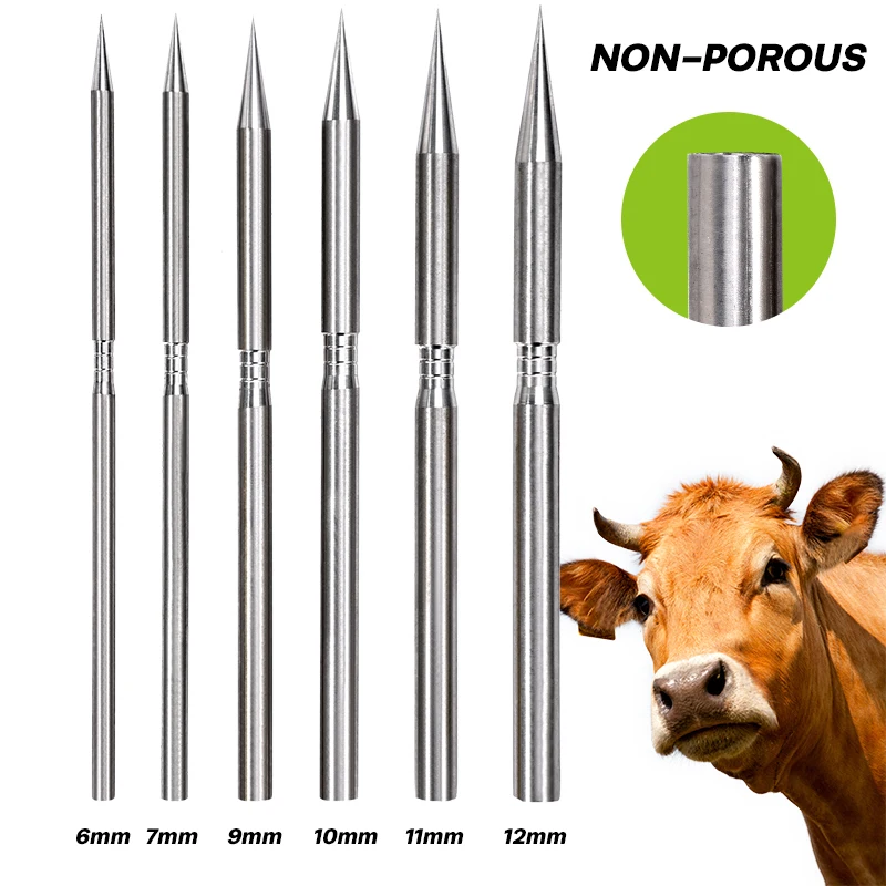 1.Perfore agujeros y use anillos para la nariz: la aguja perforadora de la nariz de la vaca puede hacer que sea más conveniente para los herders perforar agujeros en la nariz de la vaca y usar anillos para la nariz.