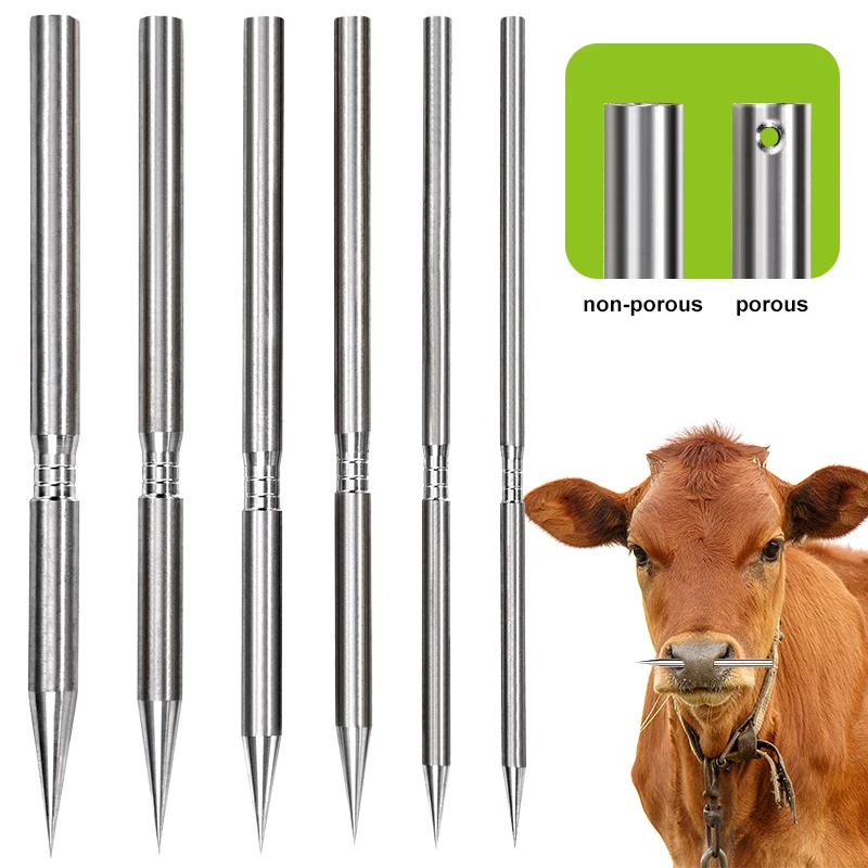 Aguja de punción de nariz de toro de acero inoxidable, conveniente para perforar agujeros y usar anillos de nariz en herramientas ranch de nariz de ganado, 1 ud.