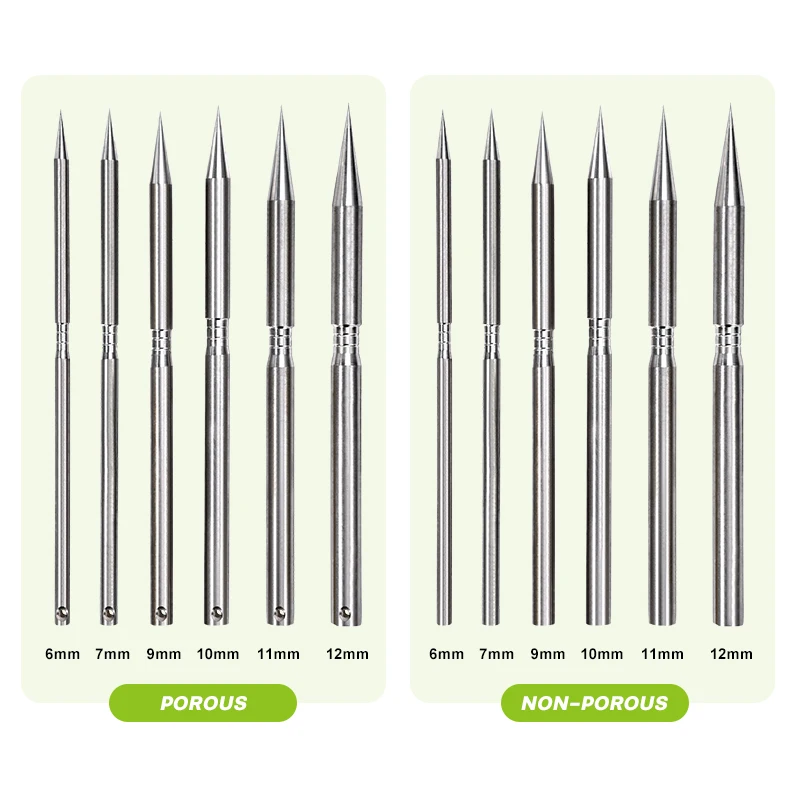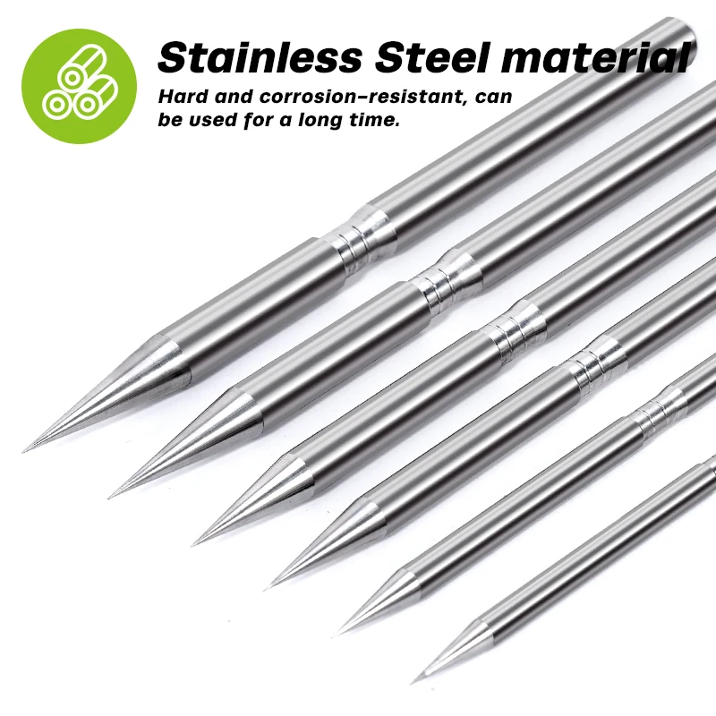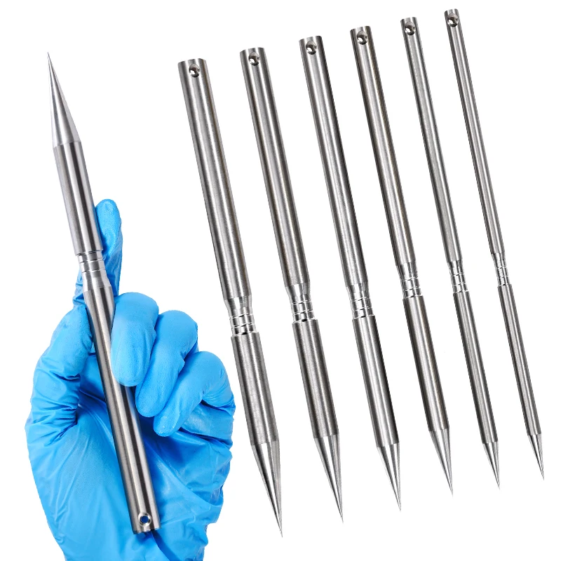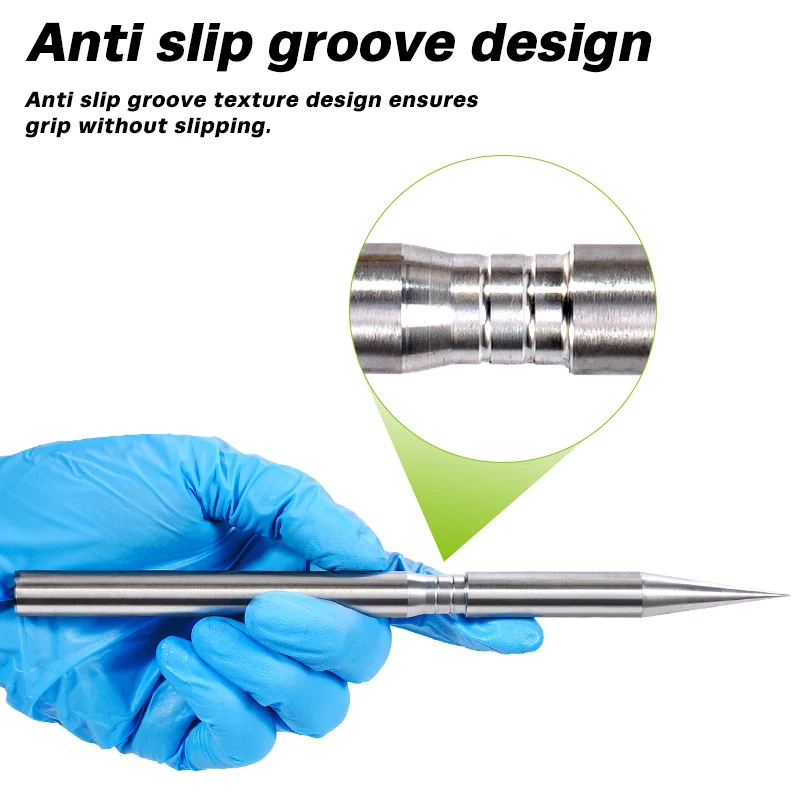 3.Ranuras antideslizantes: la aguja perforada con la nariz de la vaca tiene ranuras antideslizantes, lo que proporciona un agarre cómodo y una aplicación de fuerza conveniente.