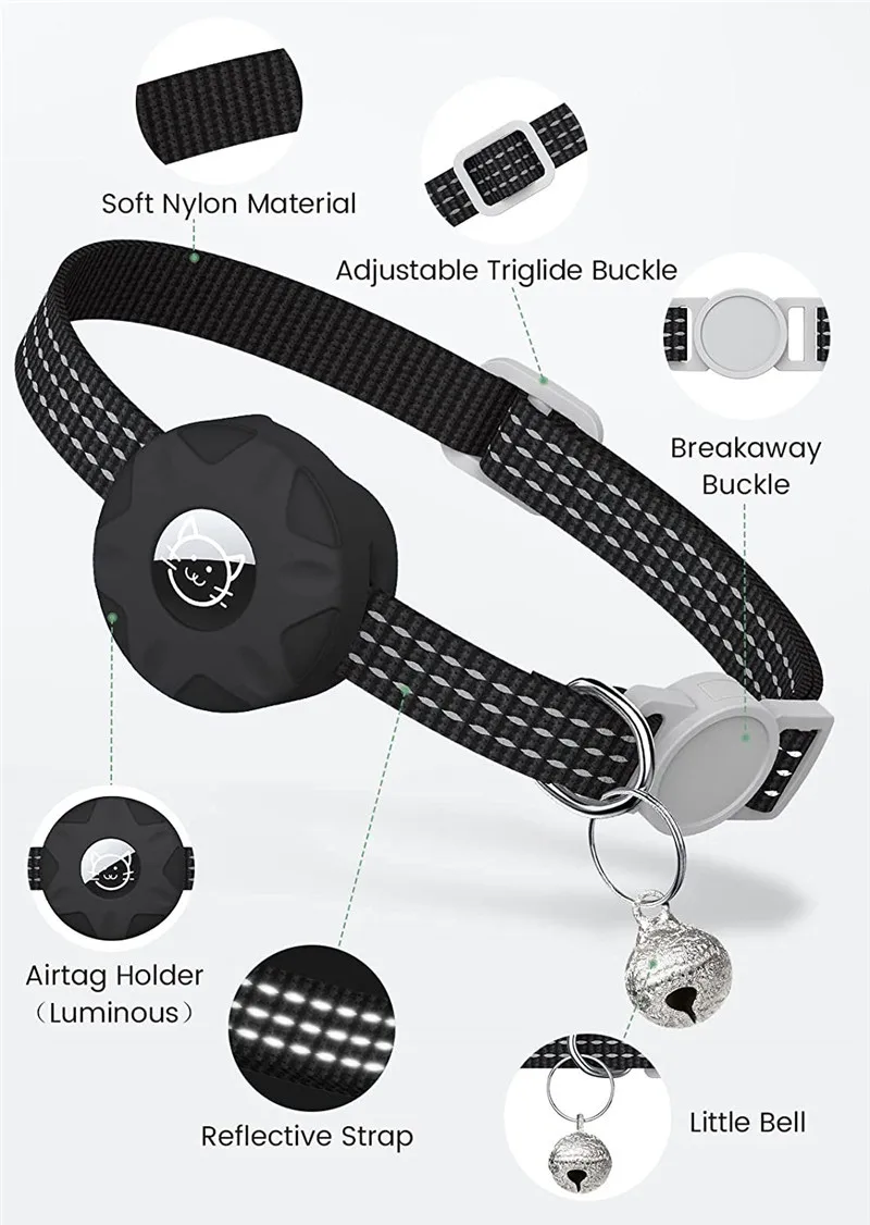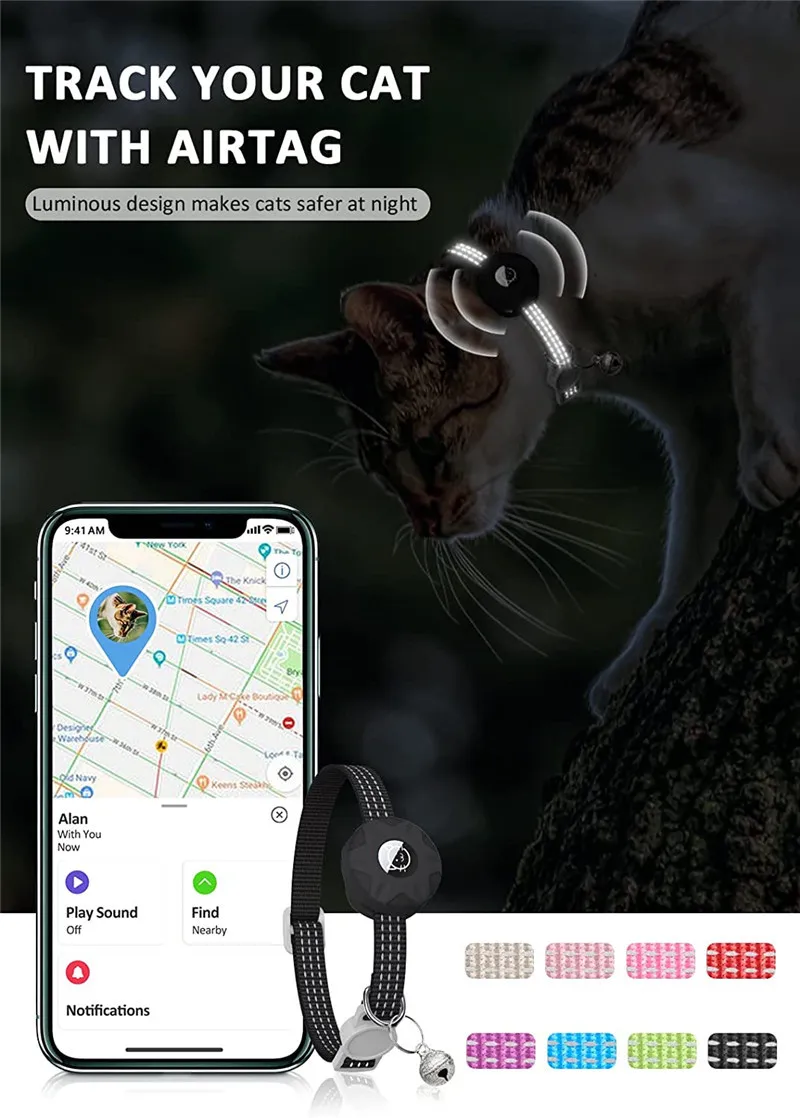 Airtag Cat Collar Positioning Tracker Silicone Sleeve Three Wire Reflective Bag Bell Dog Pet