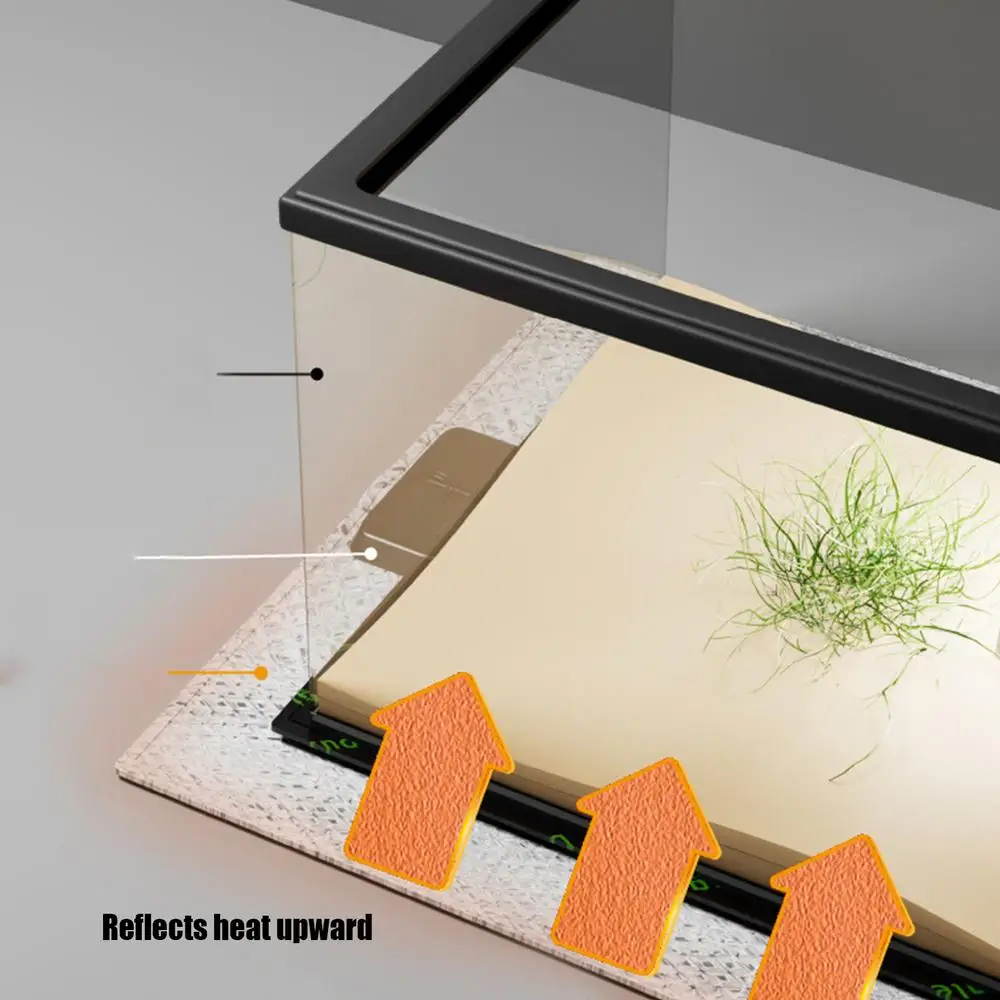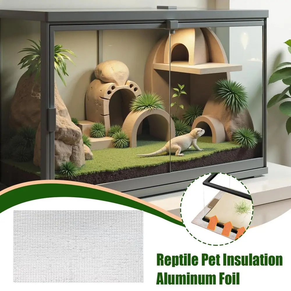 Mejore la configuración de su terrario con un aislamiento de película de papel de aluminio que actúa como un protector de estera térmica resistente para aplicaciones debajo del tanque que ofrece una retención constante de calor para respaldar la salud y la comodidad de las mascotas, como serpientes, lagartos y tortugas, dentro de sus espacios habitables.
