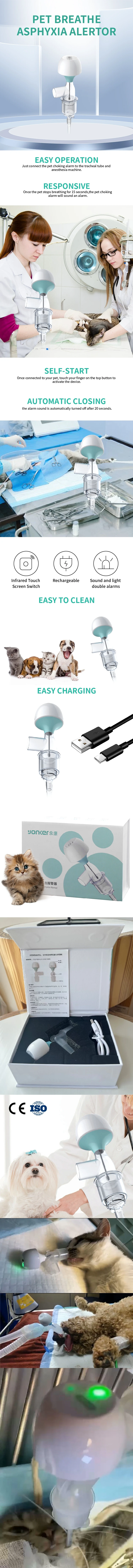 Alertor de asfínxia para respirar mascotas, alarma de asfixia para perros y gatos, Monitor de respiración para anestesia de animales