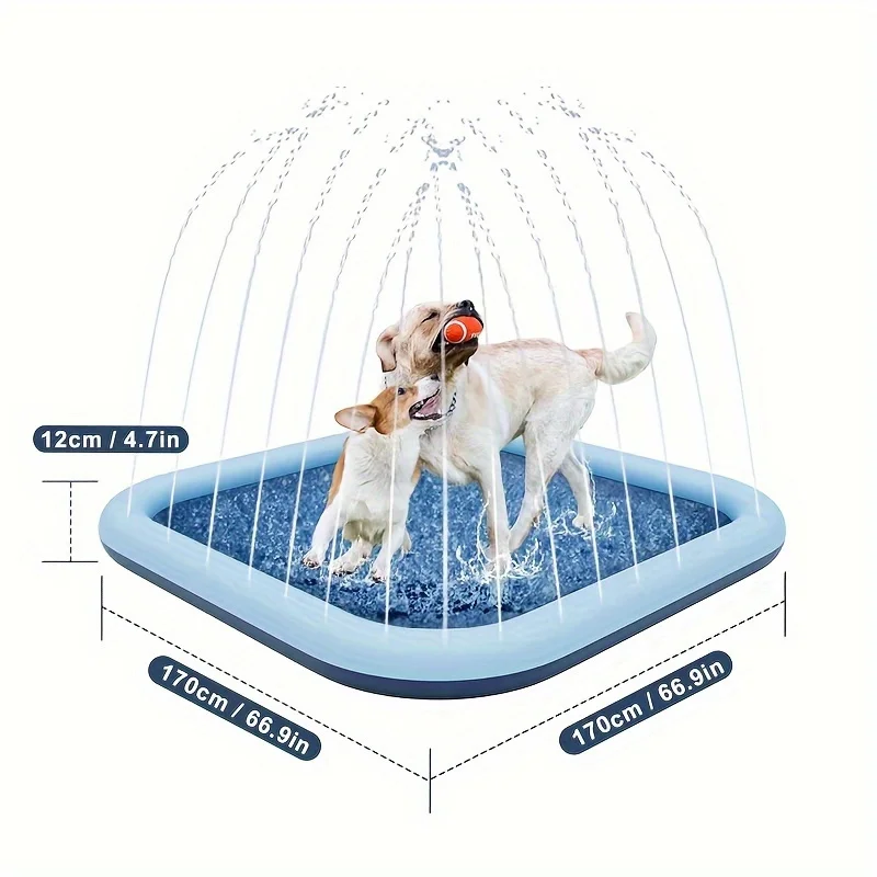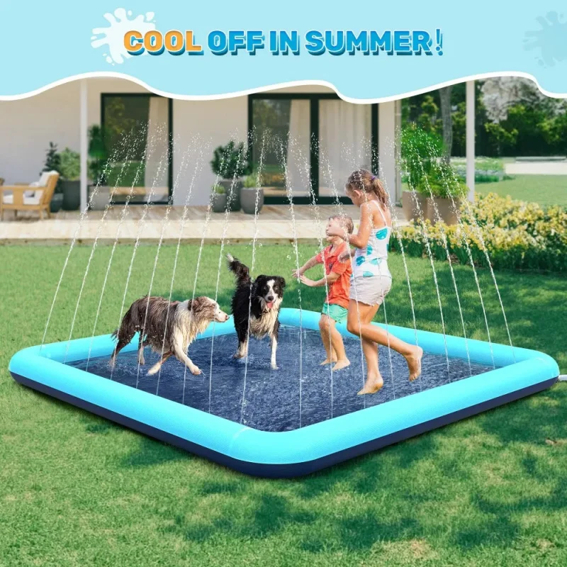 Juego de verano seguro y divertido: la almohadilla para salpicaduras para perros verde azulado ofrece un oasis refrescante para su perro durante los calurosos días de verano. Su superficie antideslizante especialmente diseñada garantiza un juego seguro para perros de todos los tamaños, lo que la hace perfecta para el patio trasero, el parque o la playa.