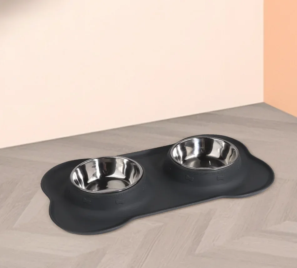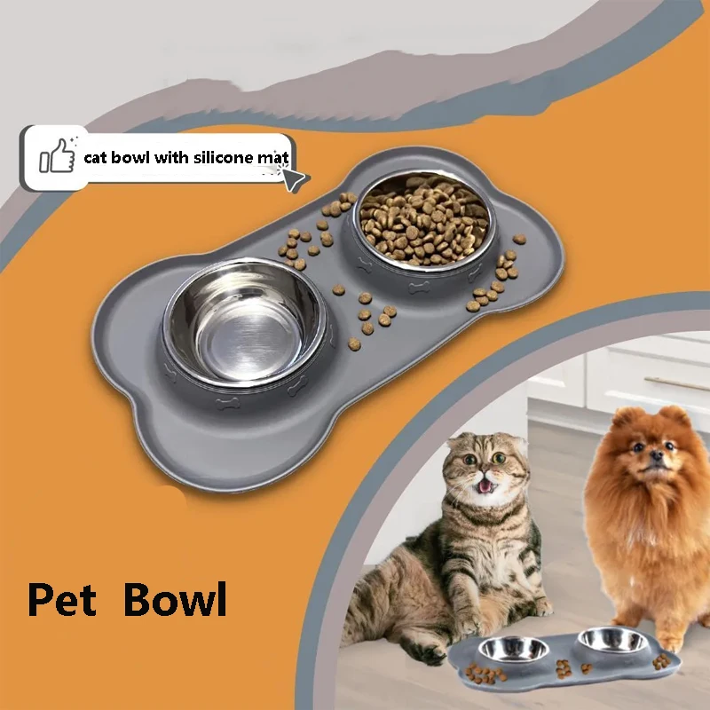 ✨¡Echa un vistazo!: Cuencos dobles para perros con alfombrilla de silicona Alimentador DE AGUA DE ACERO INOXIDABLE Cuencos para alimentación de mascotas y gatos Accesorios para cachorros y gatitos
