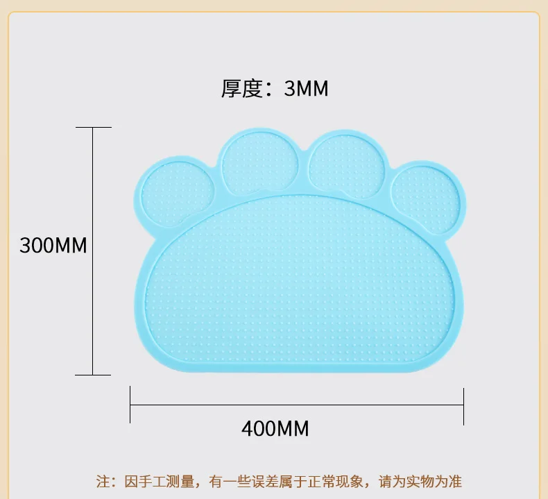 Color: Rosa, Verde, Azul, Gris, negroMaterial: siliconaPúblico objetivo: perro, gatoTamaño: 48cm * 27cm * 0,25 cm/40cm * 30cmUtilizado para: uso diarioCaracterística: fácil de limpiarTipo de artículo: Mantel individual Nota: