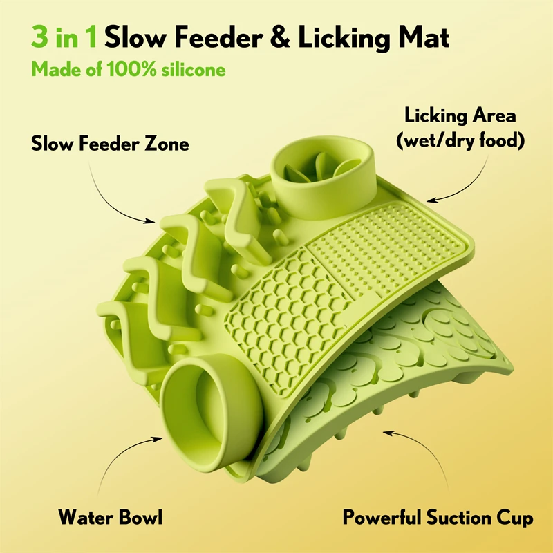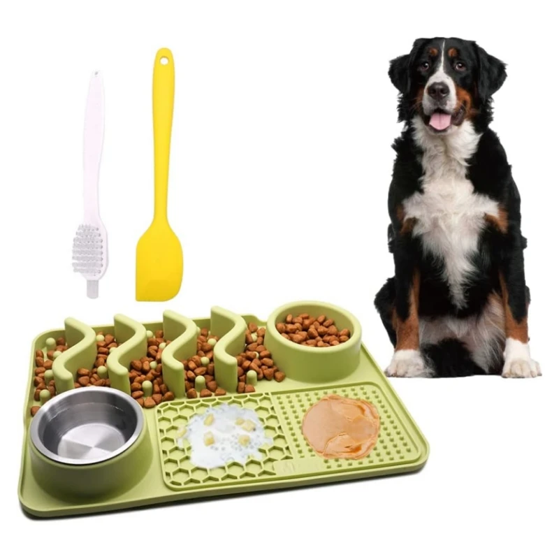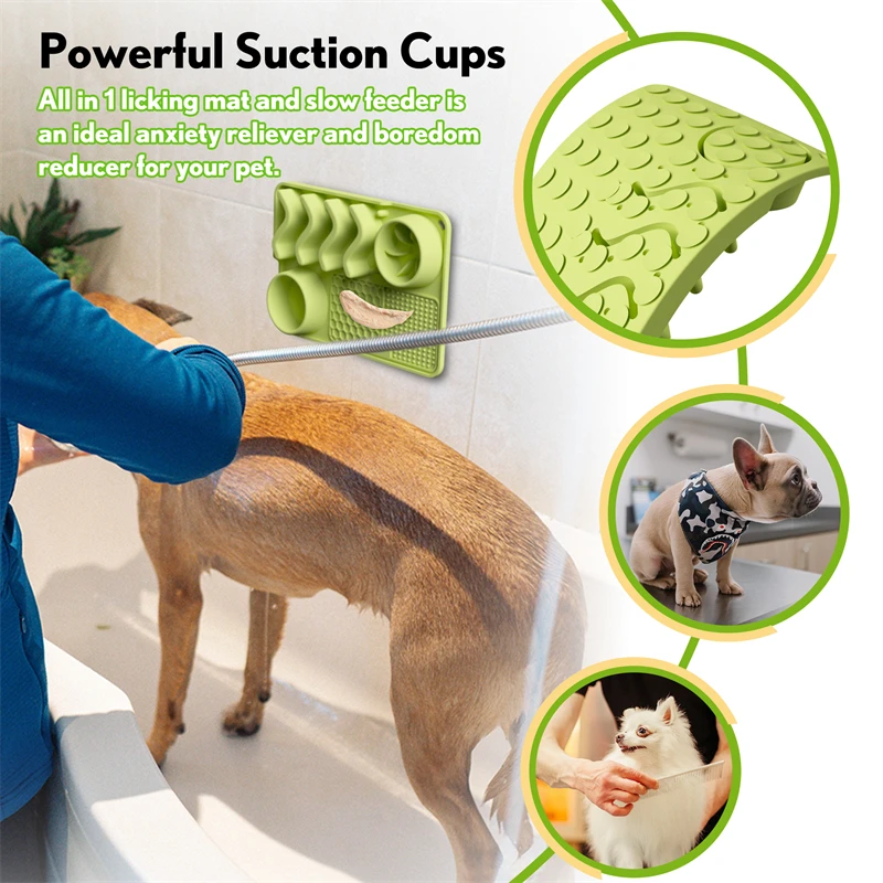 Alfombrilla para lamer perros con ventosas y tazón de acero inoxidable, alimentación lenta para gatos, baño, entrenamiento de aseo, aliviar la ansiedad de las mascotas