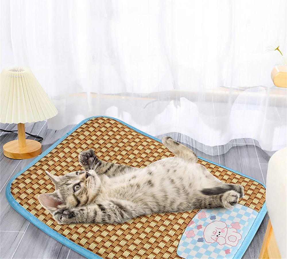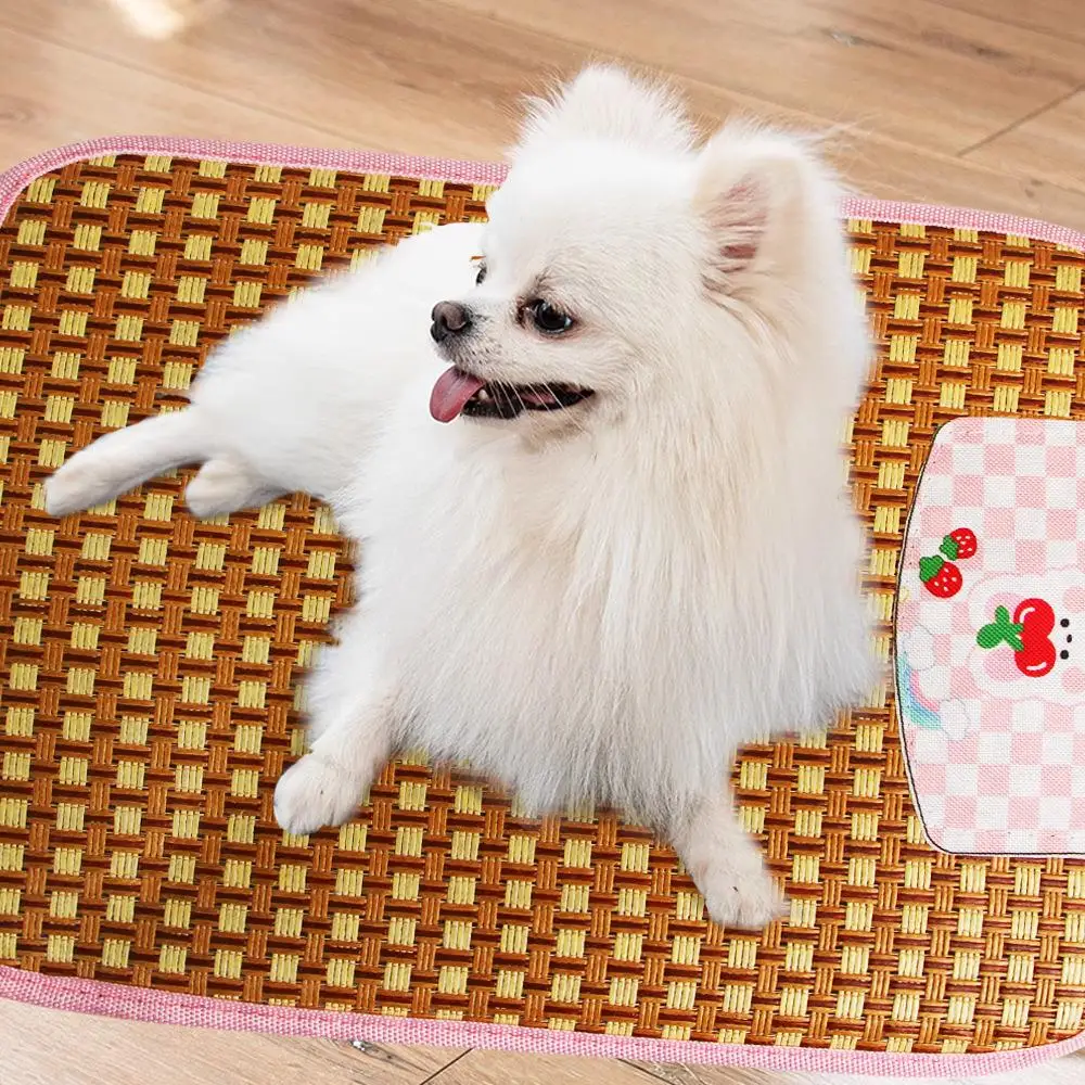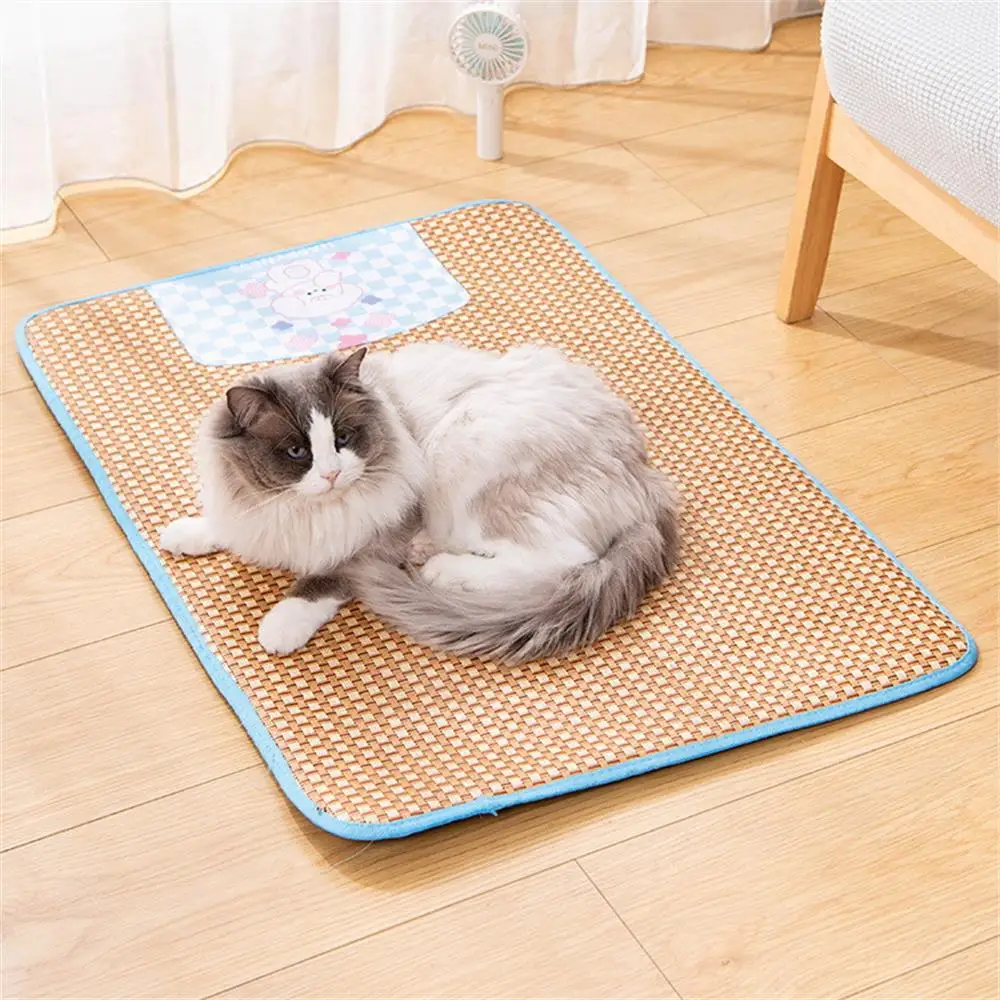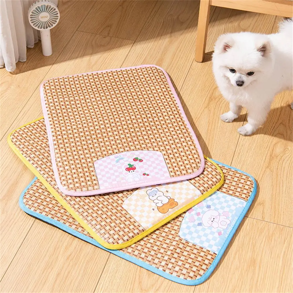 Alfombrilla de mimbre lavable y antideslizante para mascotas, esterilla de verano para gatos pequeños y medianos, almohadilla de refrigeración transpirable para cachorros y gatos, alfombrilla para dormir para mascotas