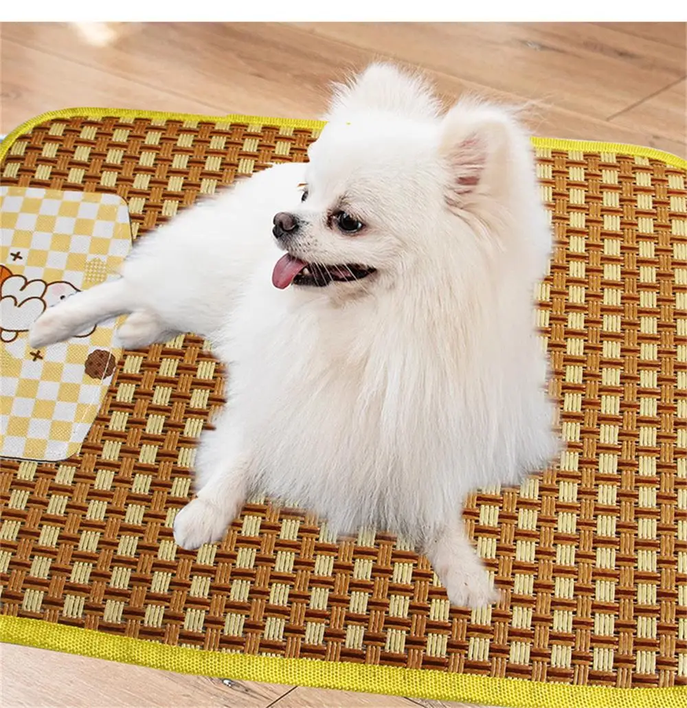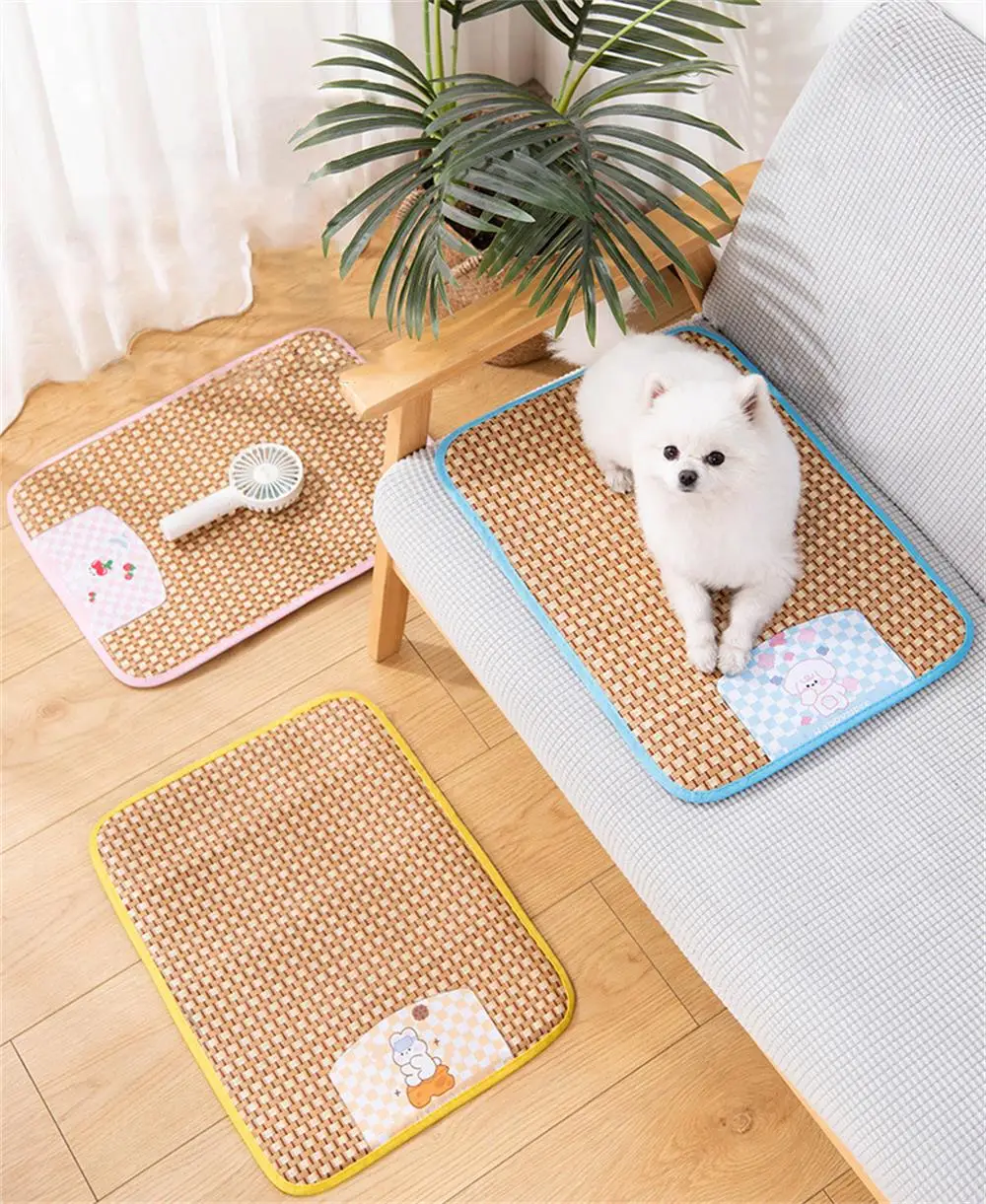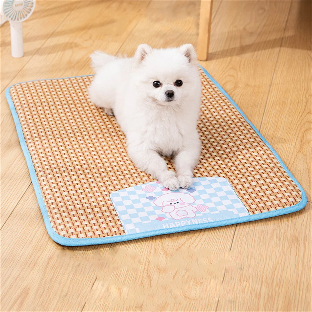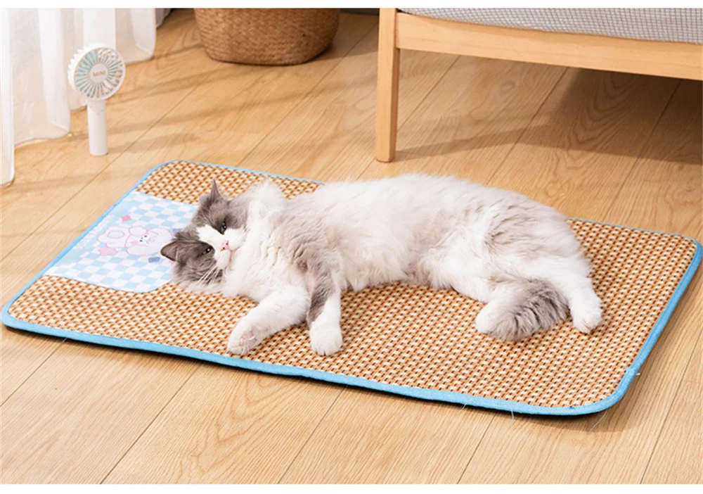 Alfombrilla de mimbre lavable y antideslizante para mascotas, esterilla de verano para gatos pequeños y medianos, almohadilla de refrigeración transpirable para cachorros y gatos, alfombrilla para dormir para mascotas