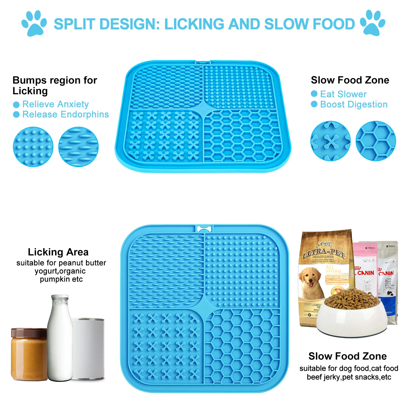 Alfombrillas 4 en 1 para perros y gatos, diseño de rompecabezas dividido, alimentación lenta para aliviar la ansiedad, Material seguro, fácil de limpiar