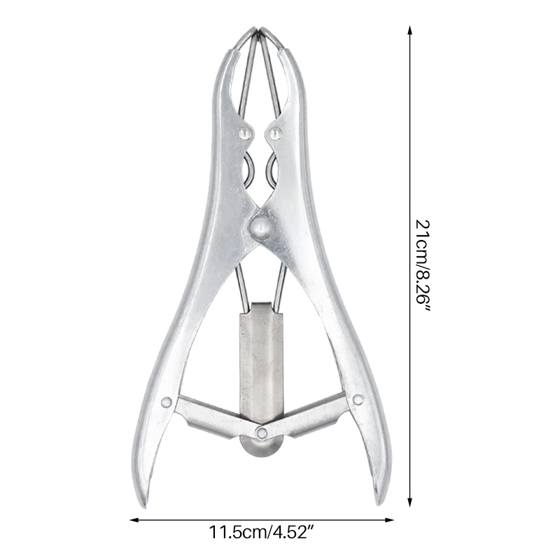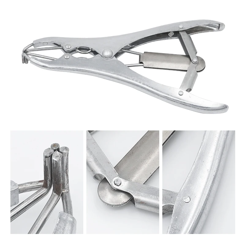 Las grapas en cuatro direcciones pueden estirar el anillo de castración.