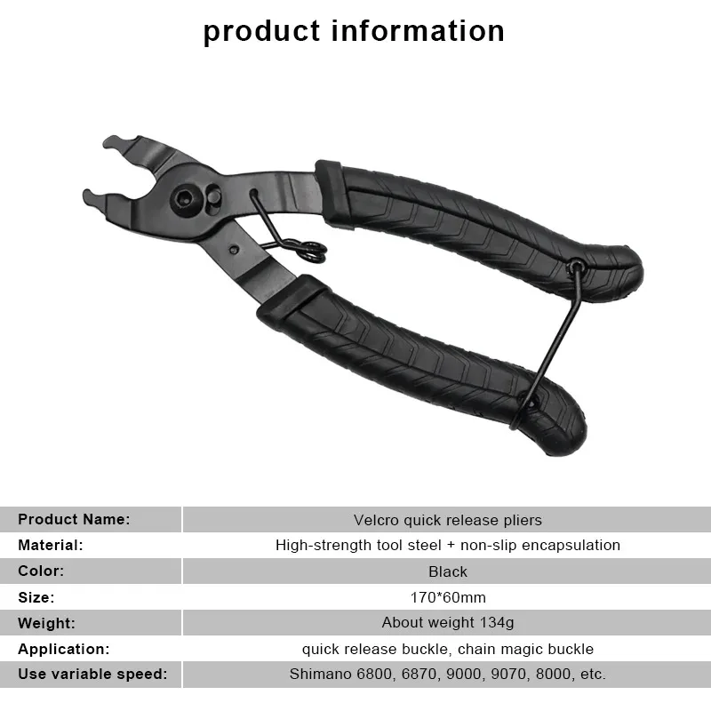 Alicates de hebilla de cadena de eslabones de bicicleta, abrazadera removedora de eslabones de bicicleta de carretera, herramienta de reparación de extracción de eslabones de liberación rápida, herramienta de abrazadera de botón mágico MTB