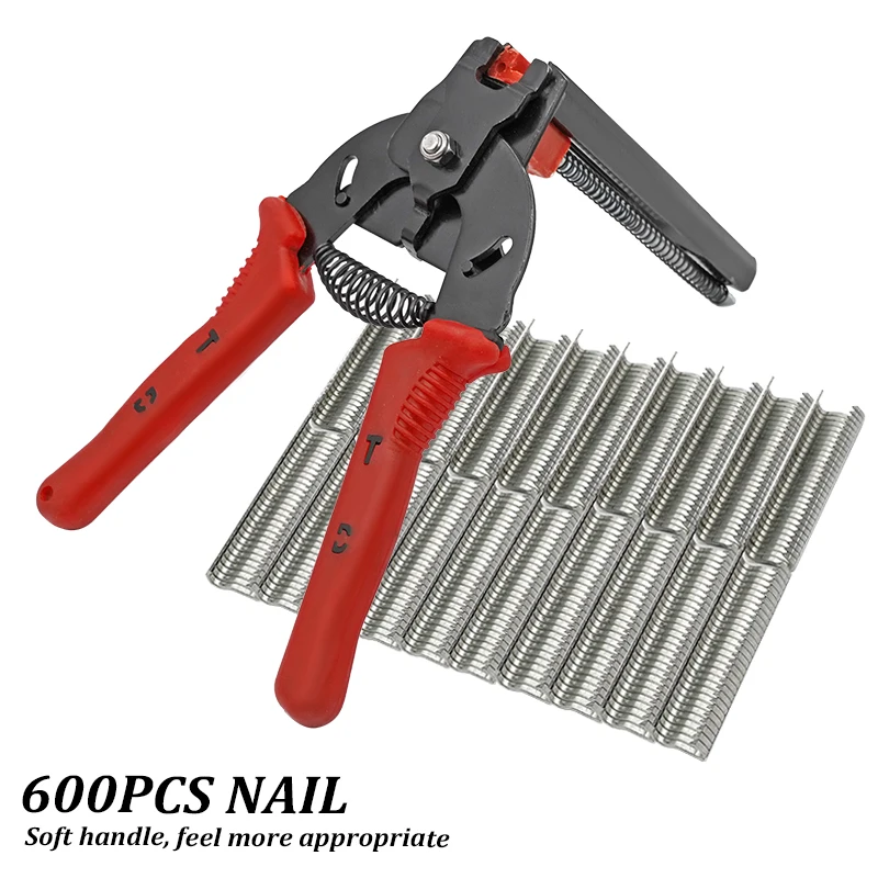Alicates de jaula de malla de alambre de hierro para pollo, abrazadera de jaula de cercado, pinzas de jaula para aves de corral, herramienta de Alicates de anillo y grapas de Clips de 600PCSM