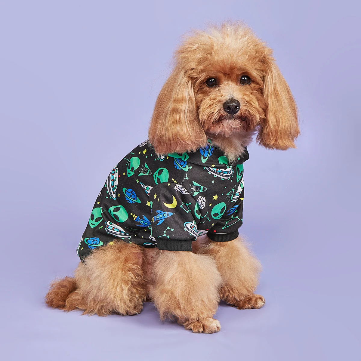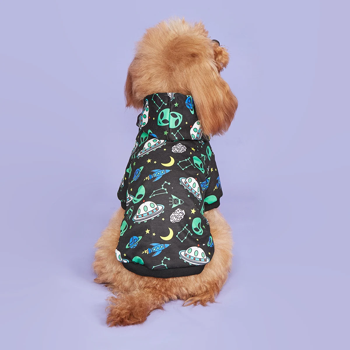 Alien-Sudadera con capucha para perro, chaqueta cálida para perro, abrigo para cachorro, sudadera con platillo volador, disfraz de Navidad y Halloween, ropa de invierno para perro, aplicación para mascotas