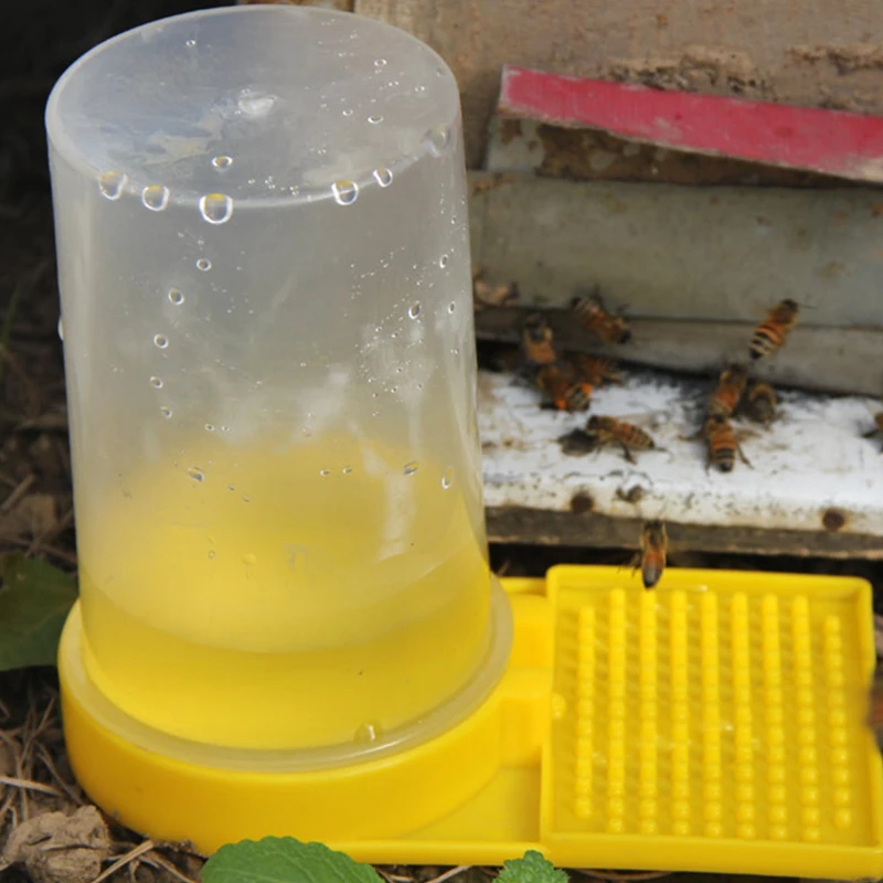 Alimentador de abejas de 3 piezas, alimentador de agua potable, herramienta de apicultura, Base, contenedor amarillo, plástico transparente blanco, resistente, desmontable