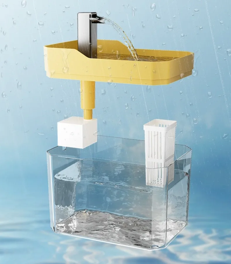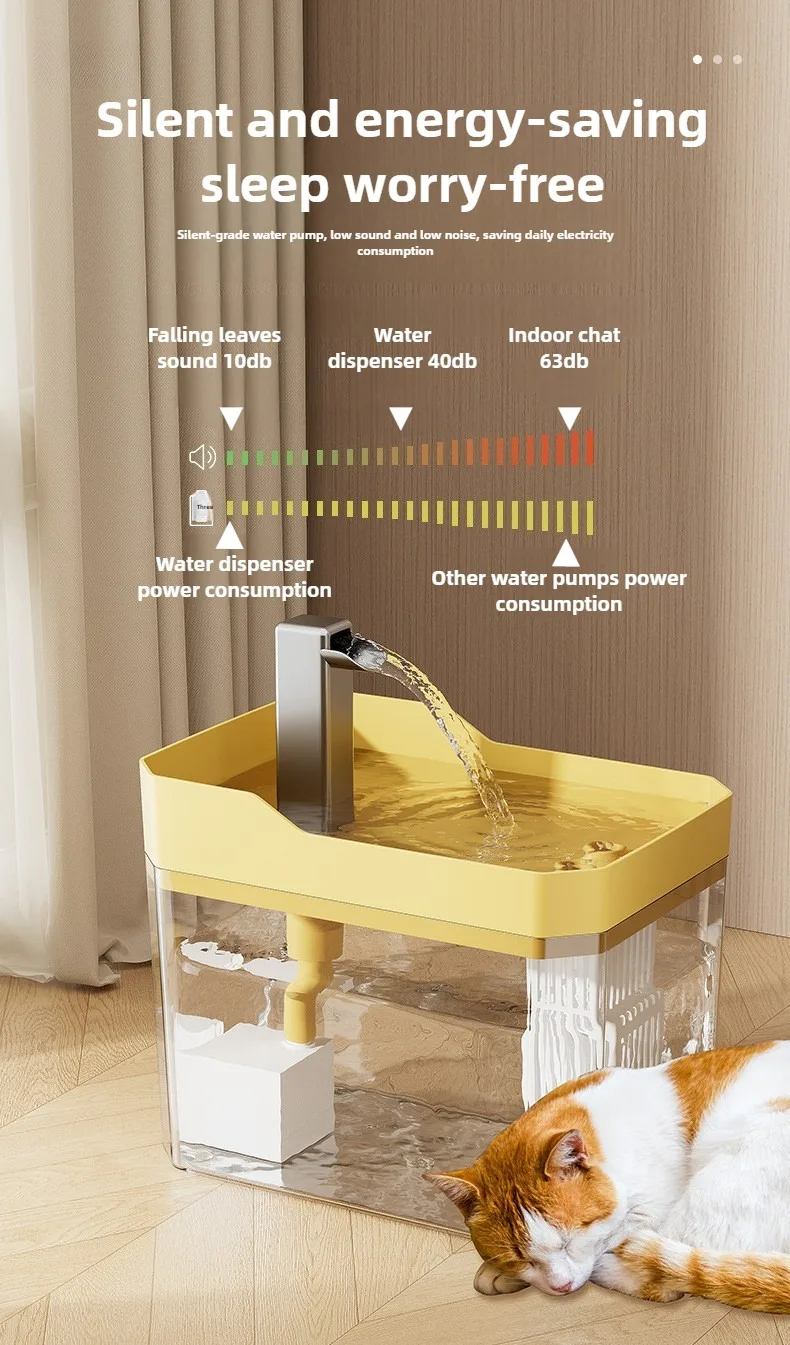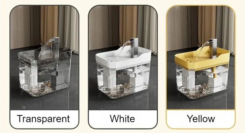 Tamaño: 16,5*11,5*12 cm Material: PET ecológico, PP Flujo: 160L/H Potencia: 2,5W Voltaje: 220-240V Longitud del cable de alimentación: 1,3 M Color: transparente/amarillo/blanco