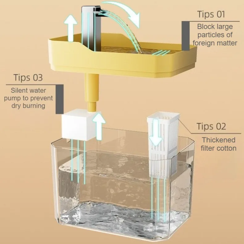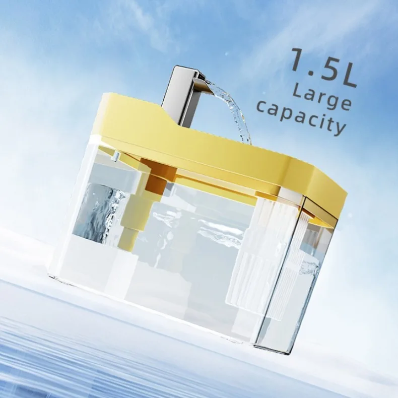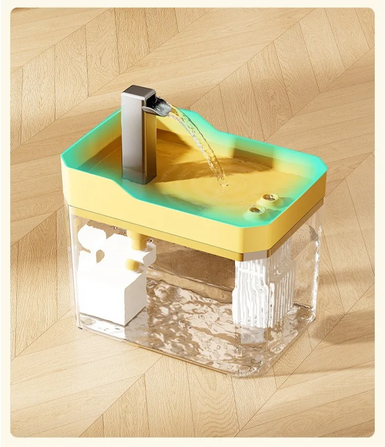 Información del producto Características: (1) Purificación de agua en circulación (2) Cuatro marchas ajustables (3) bomba silenciosa (4) Filtración múltiple (5) Escasez de agua para evitar quemaduras en seco (6) Gran capacidad de 1,5 litros (7) Lavado extraíble (8) Material de calidad ambiental