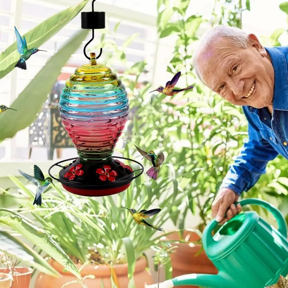 3. Calidad duradera: soplado a mano y hecho a mano, este comedero para colibríes está hecho para durar. Los materiales de vidrio son resistentes a la intemperie y a la decoloración, lo que garantiza una adición vibrante a su jardín mientras atrae a los colibríes.