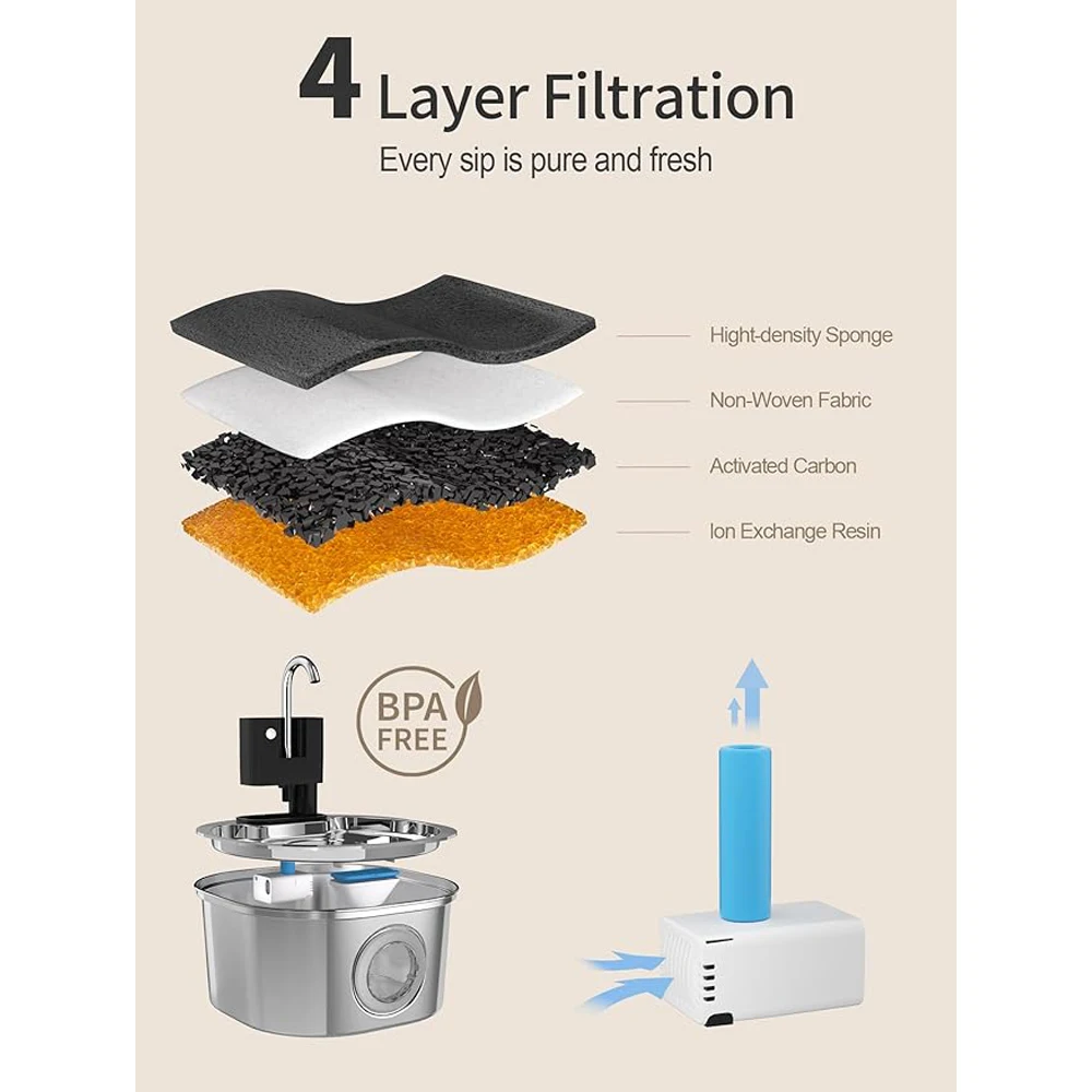 3.El chip de filtro de este alimentador de agua es un chip de filtro especial.Se recomiendaReemplace el chip del filtro una vez al mes.