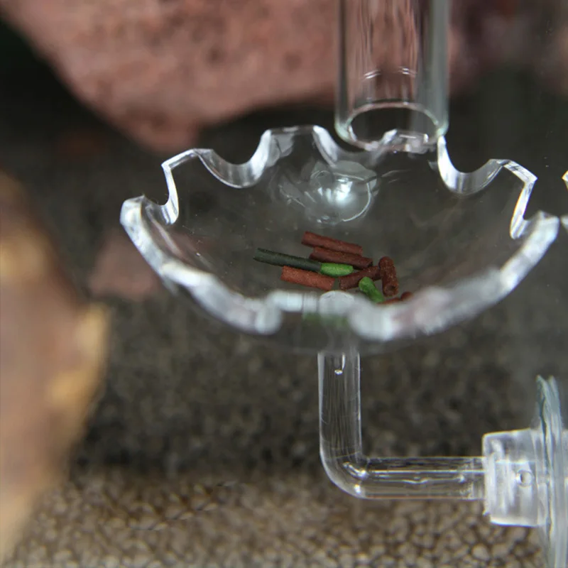 Tanque de peces de acuario, alimentador de alimentos para camarones, tubo de alimentación de vidrio transparente, plato de succión de aire, cuenco para camarones, tubo alimentador para tanque de peces, bandeja alimentadora