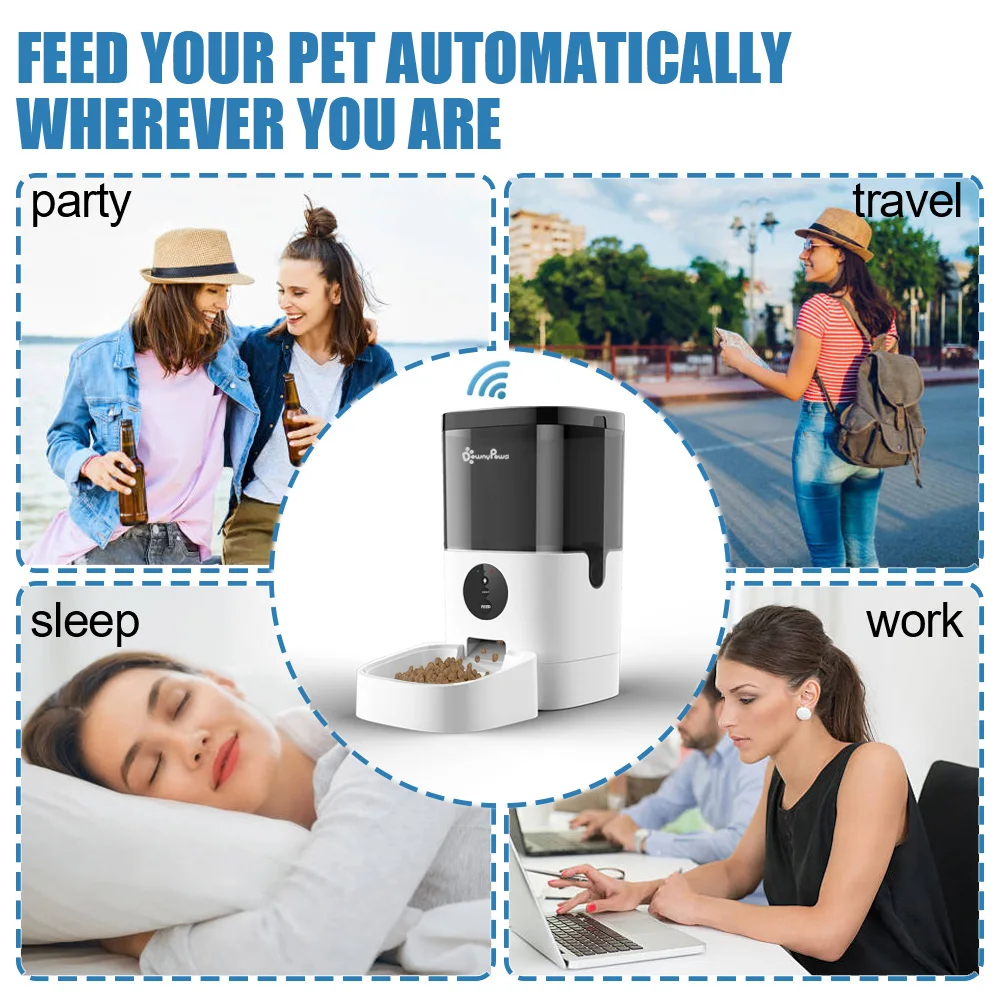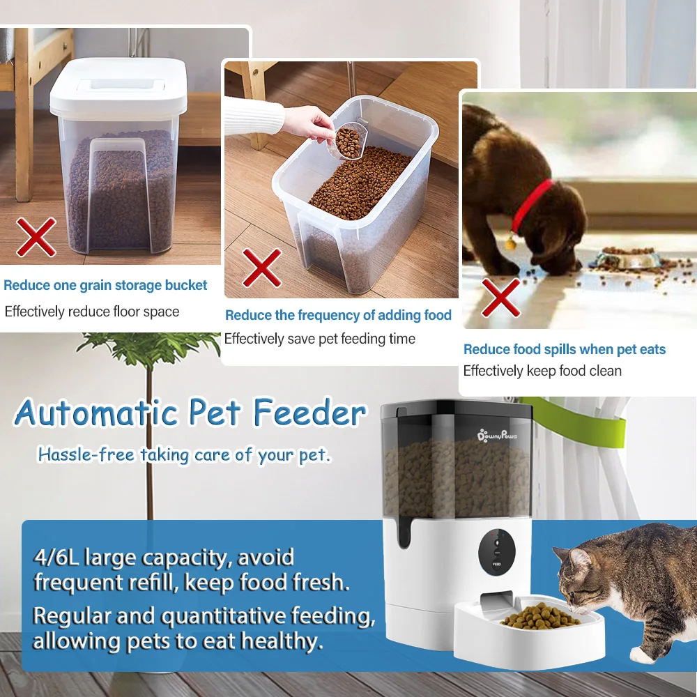 Mascotas necesitan amor atención y cuidado Pero cuidar de tu mascota entre trabajo recados personales y la familia no es fácil Automático alimentador del animal doméstico te ayuda mucho Permite que los dueños de mascotas todavía en sus mascotas y comer cuando estás en el trabajo o por un corto vacaciones Puede usar, fácil de usar, la pantalla LCD o APP para personalizar la comida veces y partes ¿Te ayuda a cuidar de tu mascota? Así su mascota es alimentado regularmente y se siente seguro ¡Bien conectado con usted a través de su grabación de voz como alimentación llamadas incluso eres!