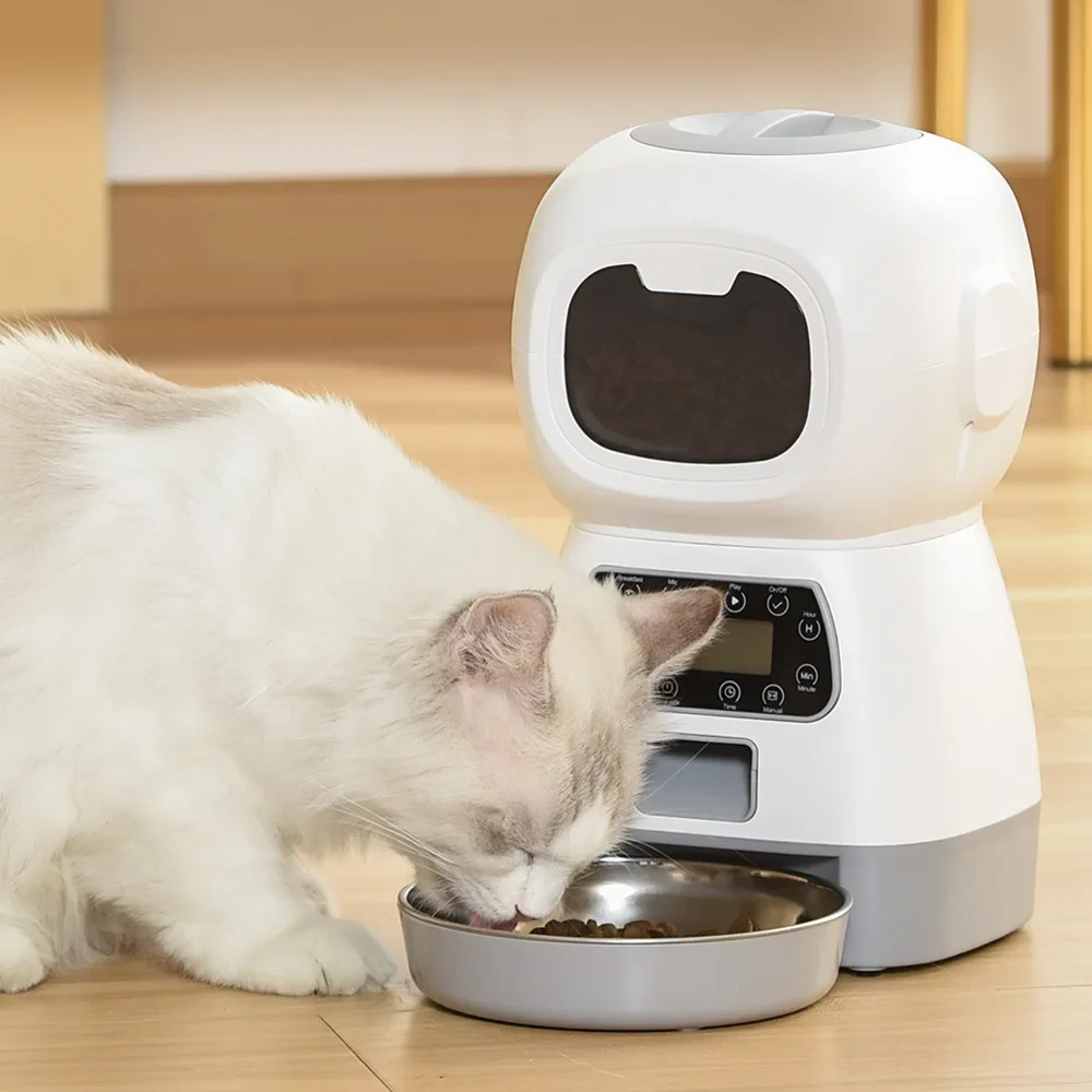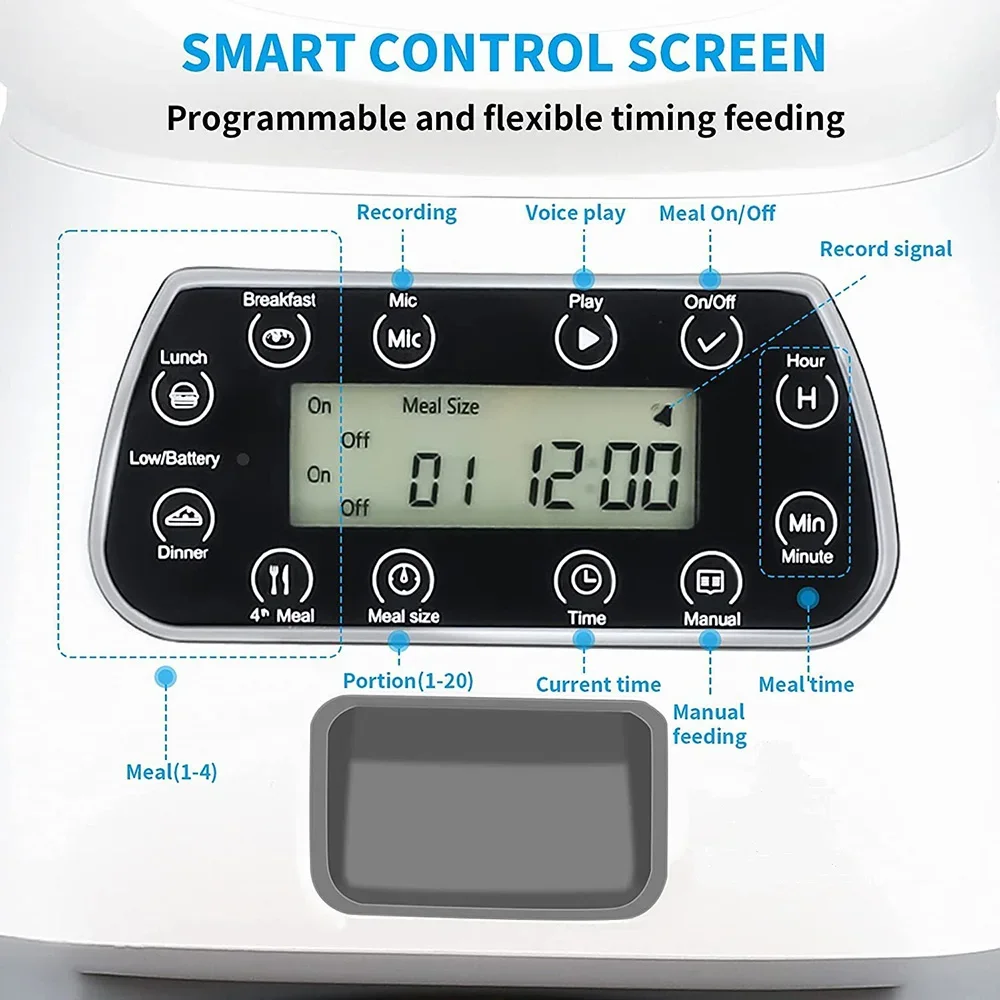 【Personalice el tiempo y la cantidad de alimentación】Este comedero automático para mascotas proporciona porciones de comida flexibles de 1 a 20 porciones por comida, 5 g para cada porción y la capacidad del recipiente es de 3,5 litros.