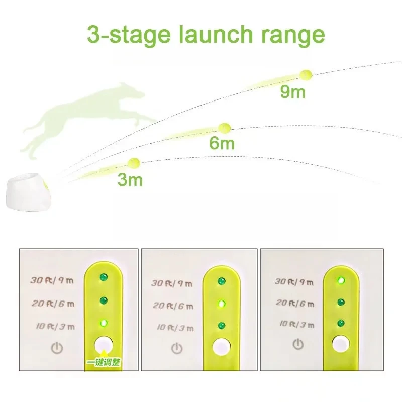 Después de arrancar, presione algunos interruptores de encendido respectivamente para seleccionar la distancia de lanzamiento de 3 metros/6 metros/9 metros.
