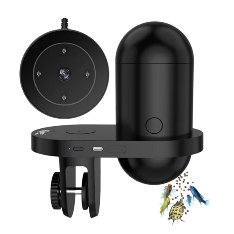 Cámara 2K HD: la cámara de alta definición que viene con el alimentador de peces le permite observar su pecera en tiempo real y monitorearla de forma remota.También puedes tomar fotos y vídeos para compartir en las redes sociales.Haz que la piscicultura sea fácil y divertida