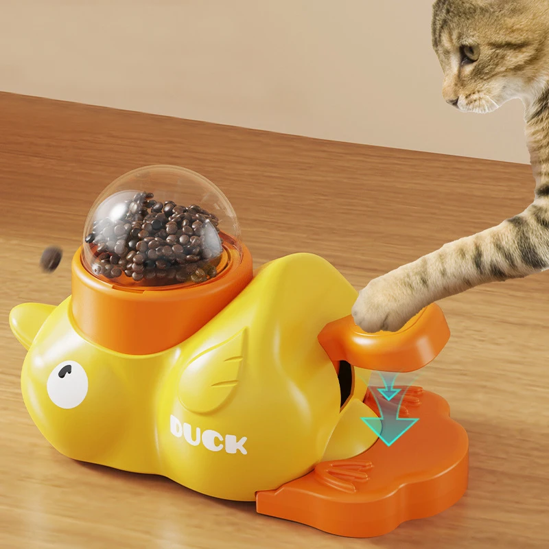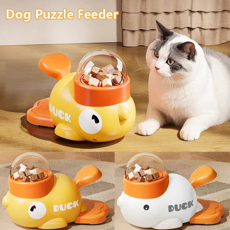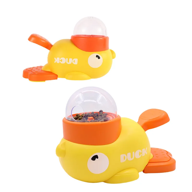 Alimentador automático de rompecabezas para perros, juguetes interactivos, dispensador de comida para mascotas, diseño de pato amarillo, alimentador antideslizante para entrenamiento de perros