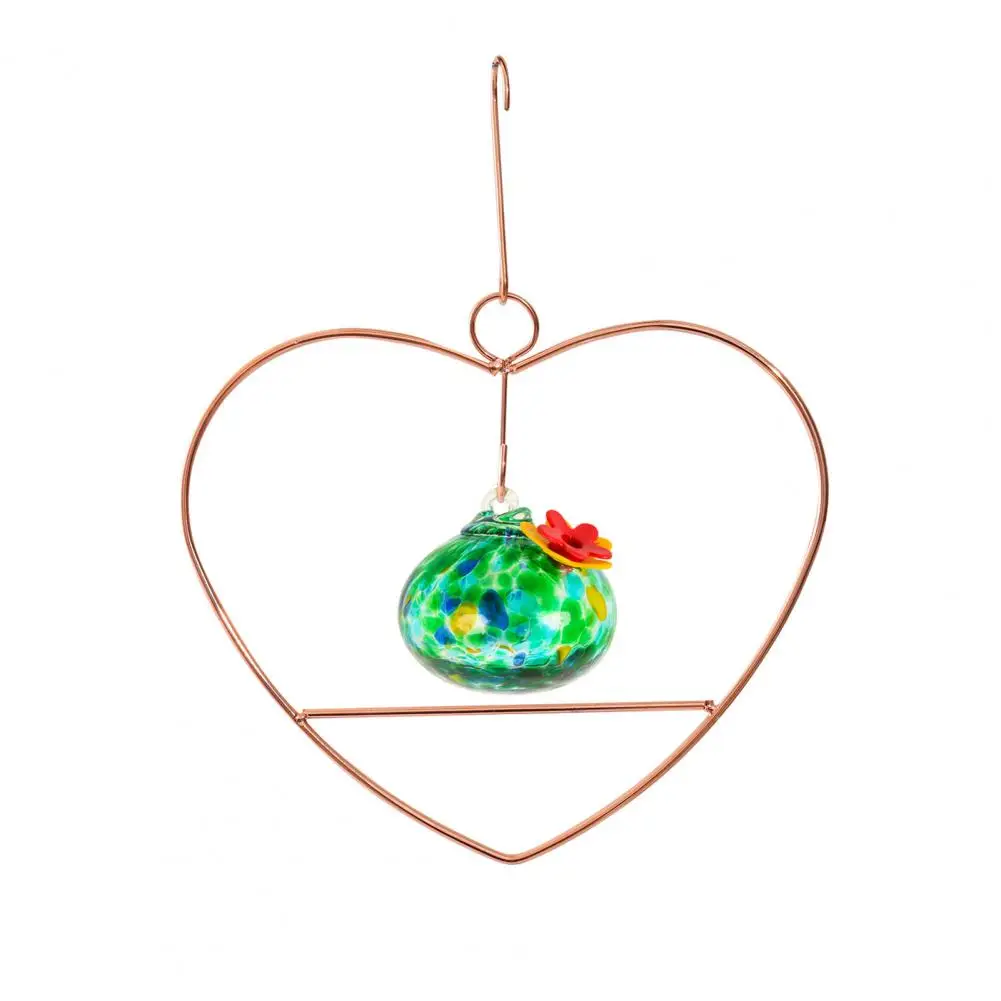 Atrae hermosos colibríes a tu jardín con este exquisito comedero para colibríes.El innovador diseño de percha proporciona un lugar de descanso para los pájaros, mientras que las flores rojas los atraen rápidamente, protegiendo sus delicados picos.Cada comedero está exclusivamente soplado a mano por expertos artesanos y cuenta con colores y patrones brillantes que nunca se desvanecen.El marco de metal en forma de corazón garantiza resistencia a la oxidación y durabilidad, lo que lo hace adecuado para colgar en jardines, patios traseros, ventanas, terrazas y más.