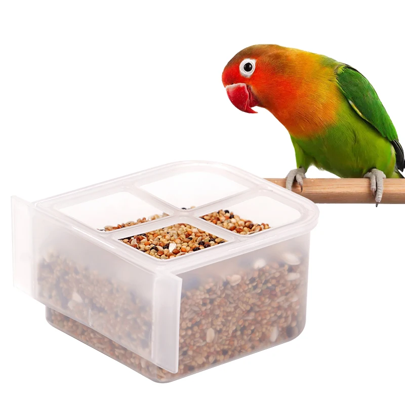 Alimentador para loros, bebedero, suministros para jaulas de pájaros, cuenco colgante, rejilla antisalpicaduras para jaula, caja transparente, fácil de instalar, accesorio para jaula para mascotas