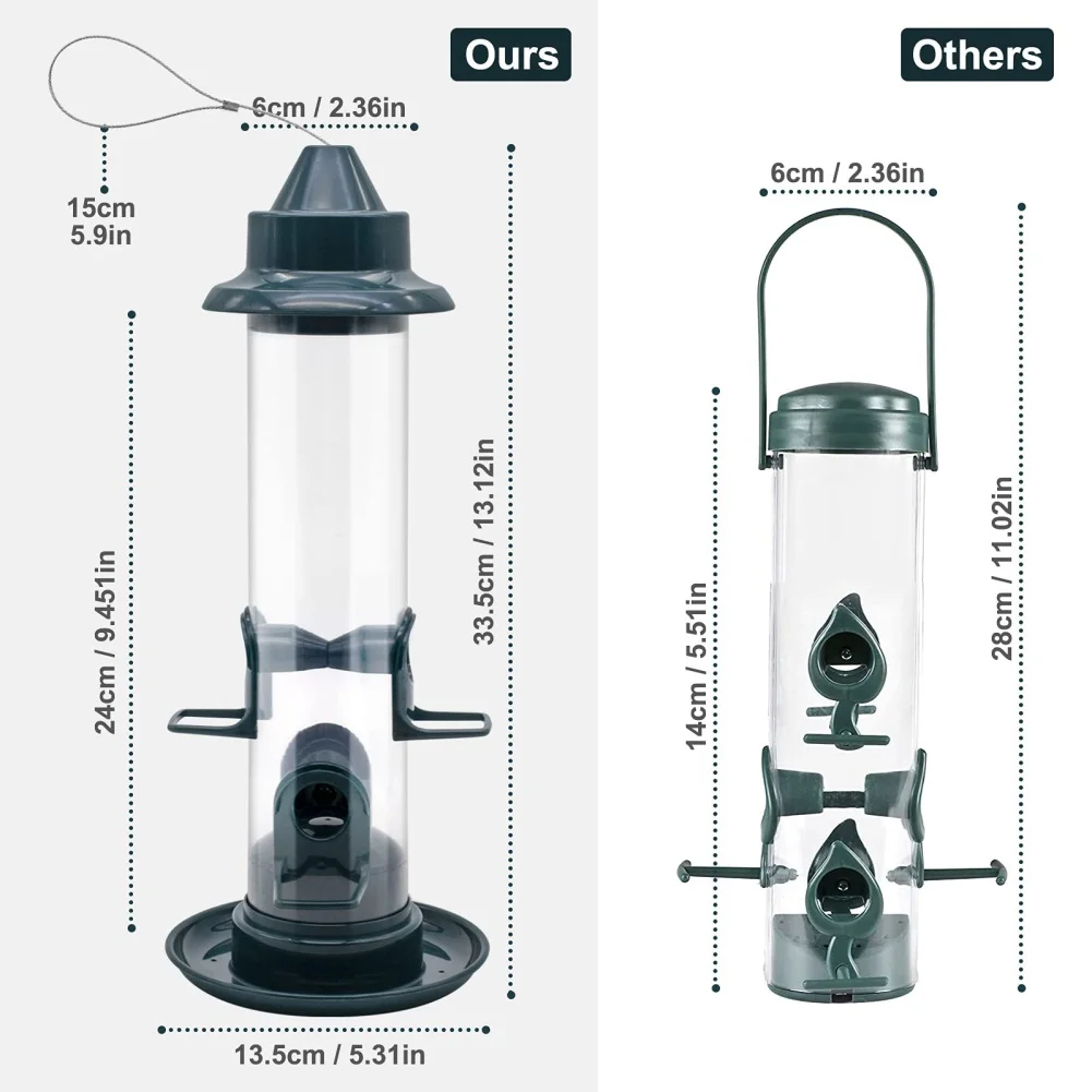 Gran capacidad: el tubo alimentador externo para pájaros tiene 15 pulgadas de largo con 4 puertos de alimentación y tiene capacidad para 3 libras de alimento para más aves al mismo tiempo. El tamaño correcto le brinda una experiencia de alimentación más intuitiva.