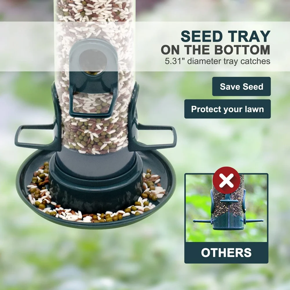 Bandeja de semillas: 9,5 "de diámetro, plataforma para recoger el desbordamiento de semillas de los comederos de pájaros para evitar el desperdicio de semillas