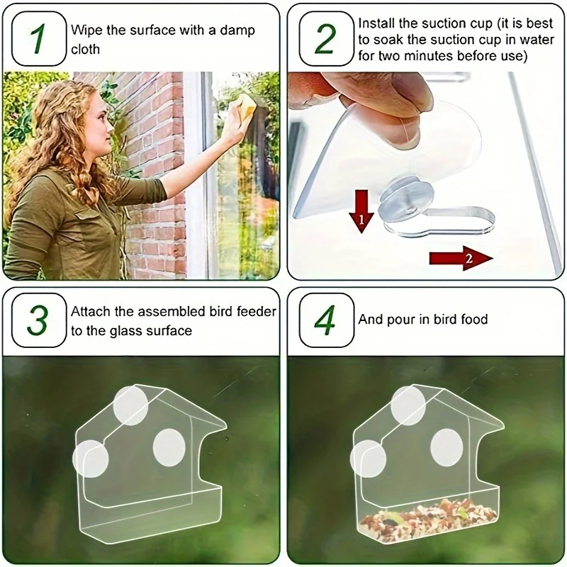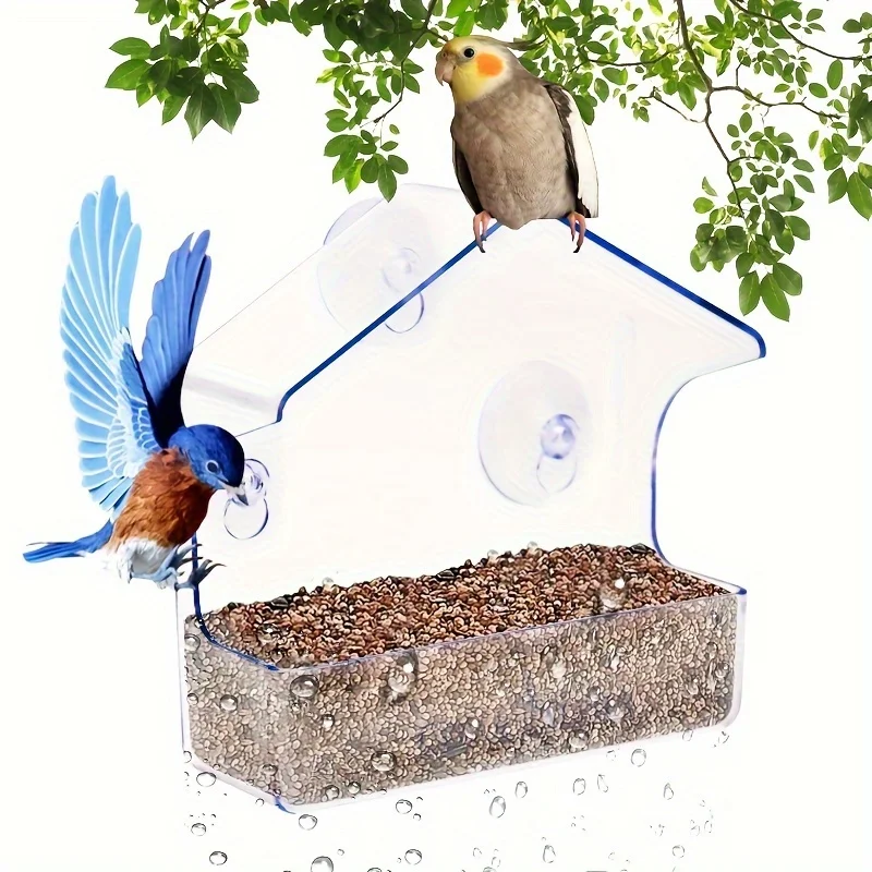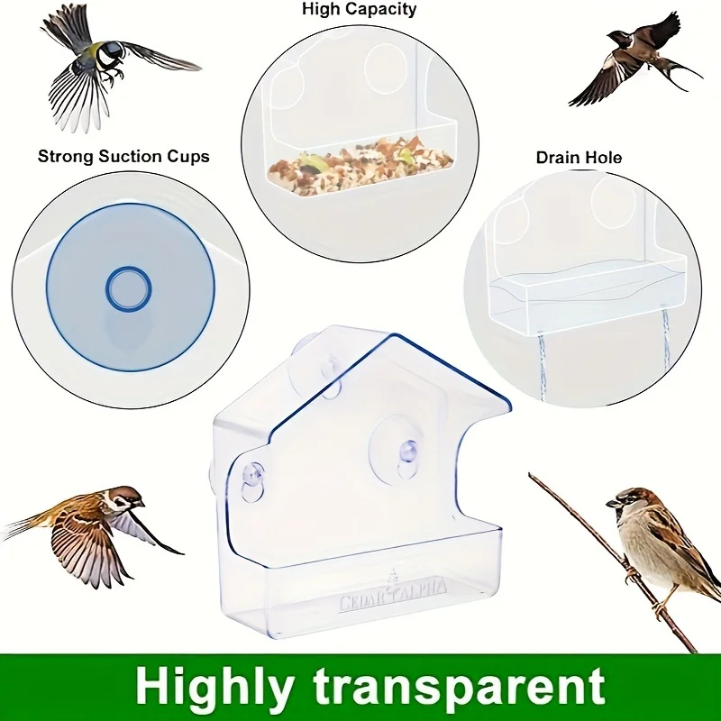 Alimentador de pájaros con ventana para exteriores, comederos de plástico transparente con ventosas fuertes, comida transparente para pájaros, 1 unidad