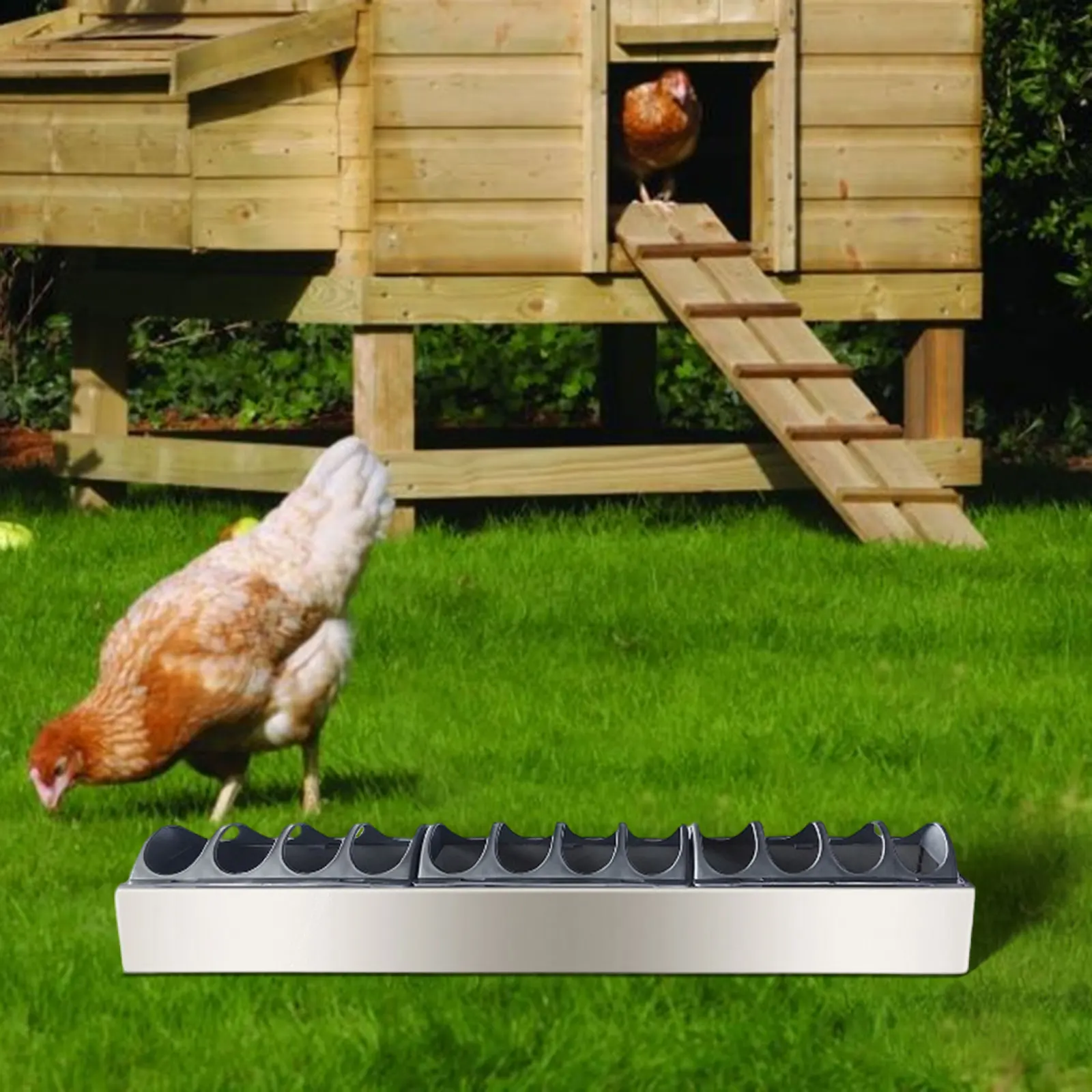 【Resistente a la intemperie】: Hecho de acero inoxidable de calidad, este comedero para pollos resiste condiciones climáticas adversas para un rendimiento prolongado y confiable.