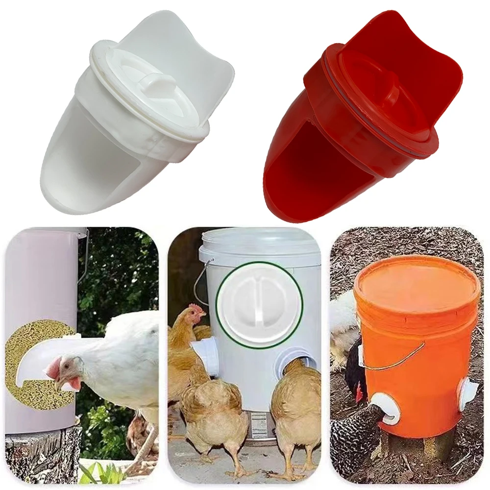 Alimentador de pollos, suministros de alimentación para aves de corral, puerto alimentador de aves de corral a prueba de lluvia, Kit de alimentación por gravedad para cubos, barriles, contenedores, trozos