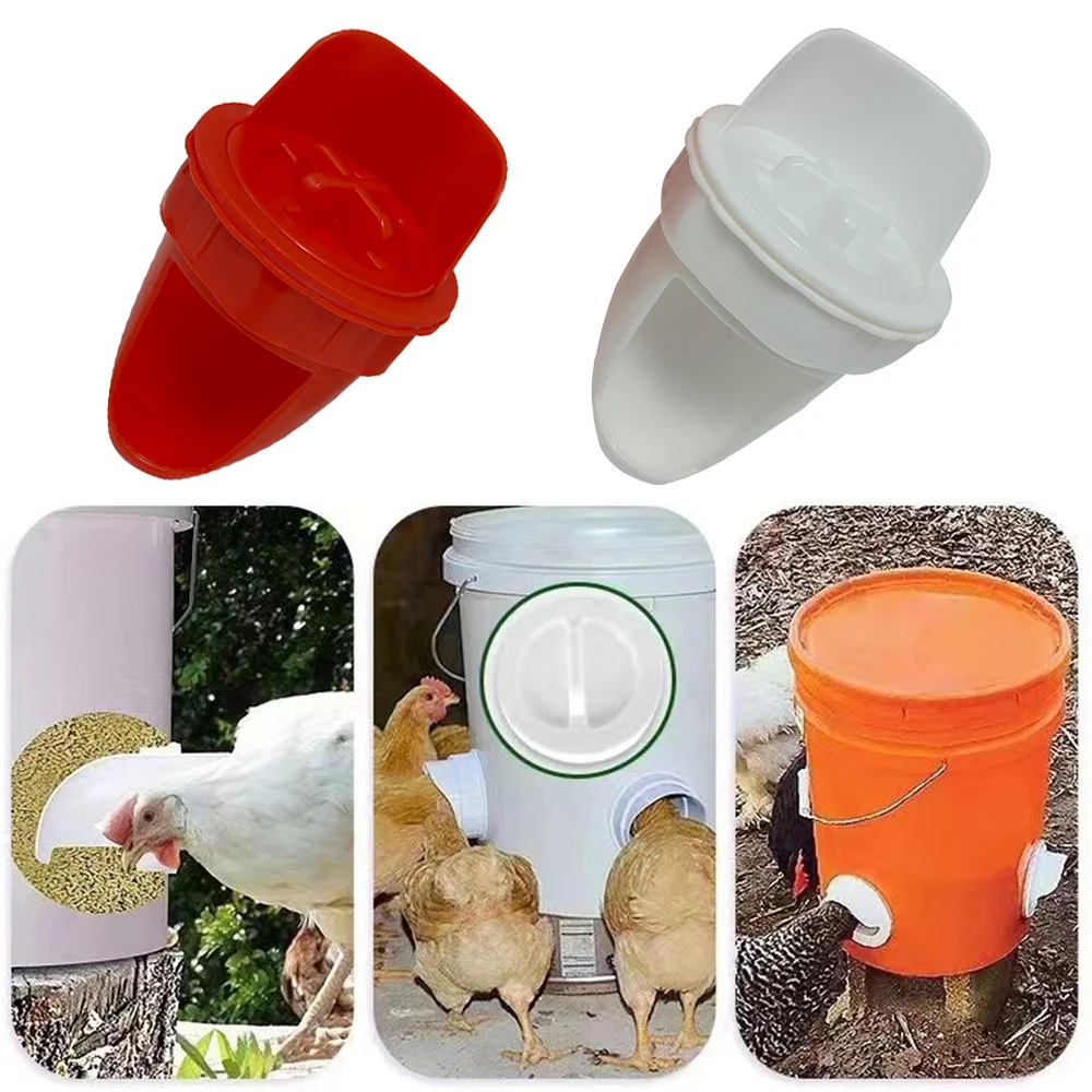 Alimentador de pollos, suministros de alimentación para aves de corral, puerto alimentador de aves de corral a prueba de lluvia, Kit de alimentación por gravedad para cubos, barriles, contenedores, trozos