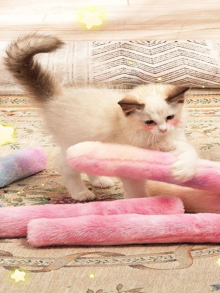 Almohada de color degradado de felpa para gato de otoño e invierno, palo masticable para gato, juguete para gato de autodefensa y alivio del aburrimiento