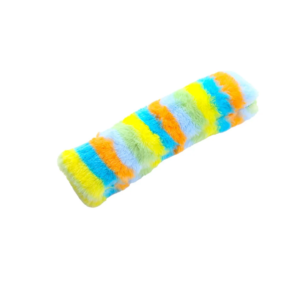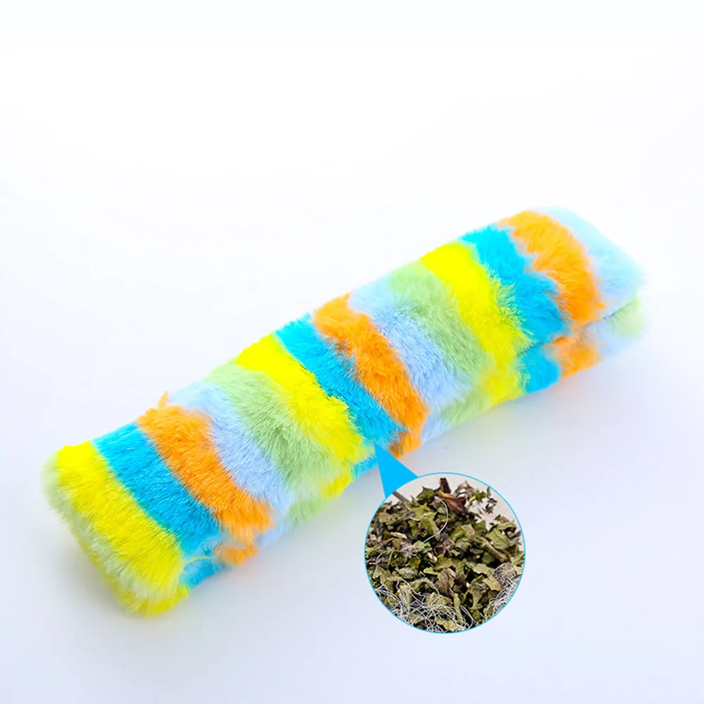 Almohada de juguete larga de felpa de arcoíris para gatos, con hierba gatera y papel arrugado, juguete interactivo de juego automático para aliviar el aburrimiento del gatito