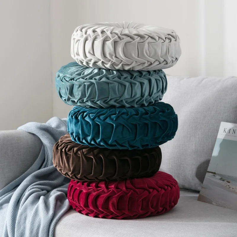 Características:El relleno de poliéster (algodón PP) y la cubierta de tela de terciopelo hacen que este cojín redondo sea suave y le dé un brillo atractivo.