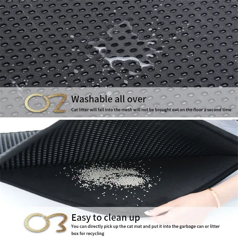 1.Es adecuado para más del 95% de los tipos de arena para gatos, la capa superior es de material con orificio pasante, la arena para gatos puede pasar fácilmente y la capa inferior es de material impermeable, la arena para gatos, la orina y otra suciedad pueden acumularse aquí.La almohadilla para arena para gatos está diseñada con capas superior e inferior: la capa superior adopta un diseño cóncavo y convexo de orificio hexagonal, además de evitar que la arena para gatos salpique después de caerse, el tacto suave esférico también puede evitar que los gatos se rayen y la parte inferior La capa está sellada para gatos.Arena, la parte inferior está diseñada con orificios redondos regulares, que son efectivamente antideslizantes para evitar que el gato rampant se resbale y se lesione.