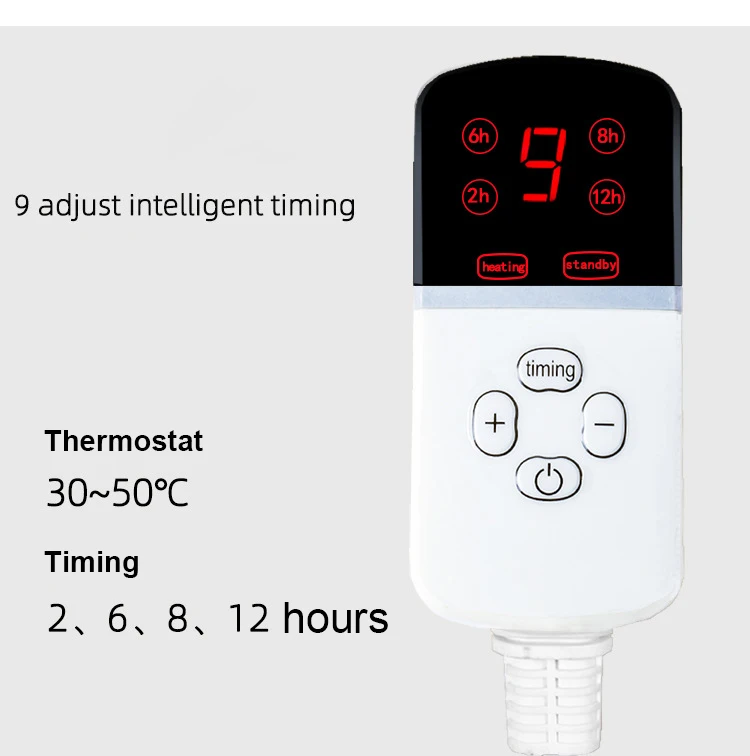 2. La almohadilla calefactora NO SE DEBE plegar ni usar cuando está energizada para evitar dañar el cable calefactor en el interior y causar pérdidas accidentales. La almohadilla térmica no se debe lavar con agua. La almohadilla térmica está hecha de tela impermeable. Con abrigo de cremallera, limpie el abrigo directamente si está sucio