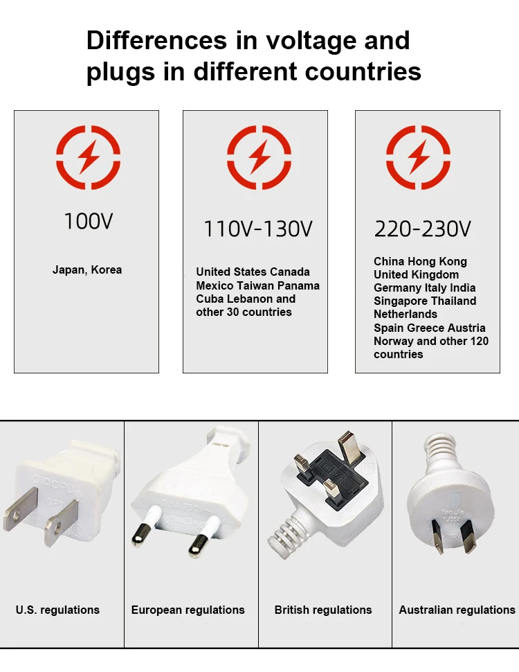 Enchufe: regulador estadounidense, regulador británico, regulador australiano, regulador europeo